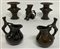 Lotto composto da cinque oggetti in bronzo di manifatture differenti, dei quali due anfore giapponesi con anse a testa di rapace (h. max cm 12) (lievi difetti)