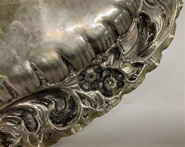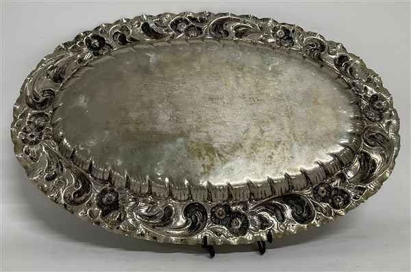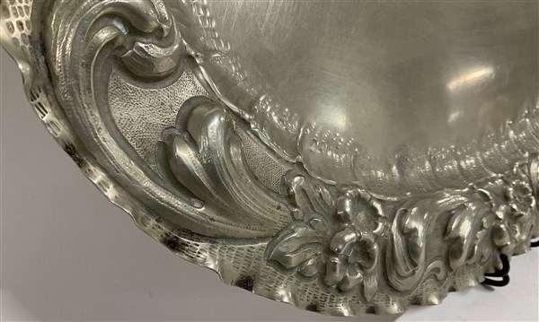 Lotto 1401 | Vassoio in metallo argentato con bordo sbalzato a fiori e volute (L. cm 47,5) (