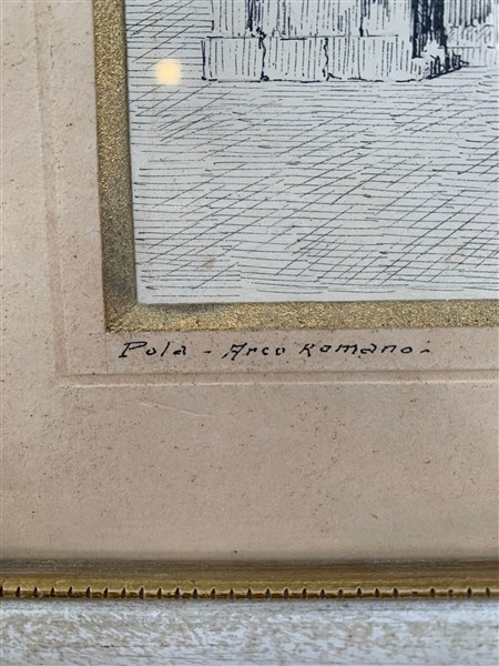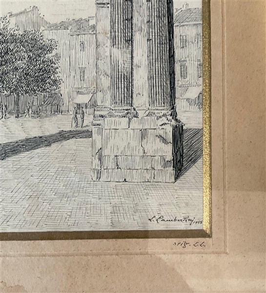 L. Lambertini, Pola, arco romano, 1955, penna e inchiostro bruno su carta (mm 270x175) in cornice (difetti)