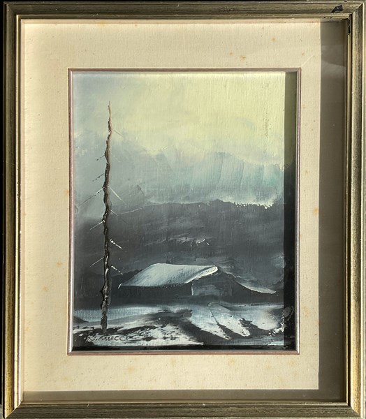 Lotto composto da due oli su tela e uno su compensato raffiguranti paesaggio e crocifissione, misure diverse (misura max cm 29x23) firmati