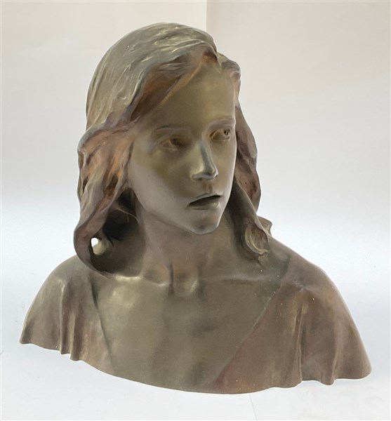 Raoul Francois Larche (1860-1912) "L'inspirè" scultura in bronzo firmata Raoul Larche con punzone del bronzista "SIOT PARIS" e numerale (h. cm 36,5 ) (difetti)