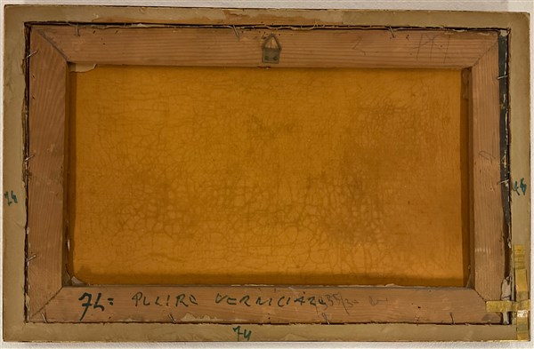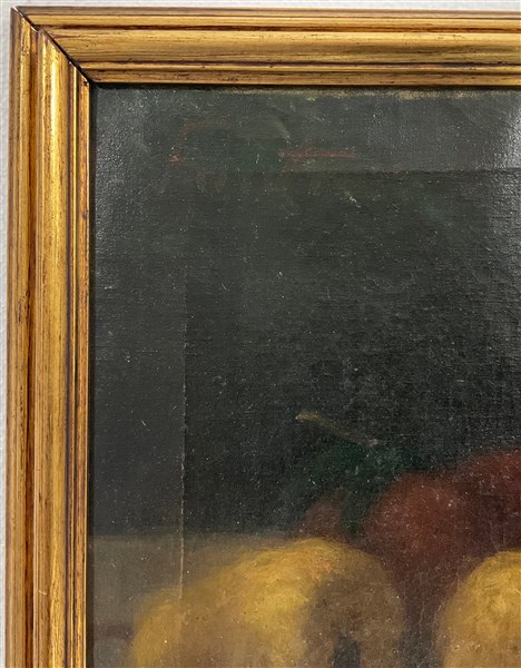 Firma indecifrata, "Composizione con pere" olio su tela (cm 31x52) Tracce di fi