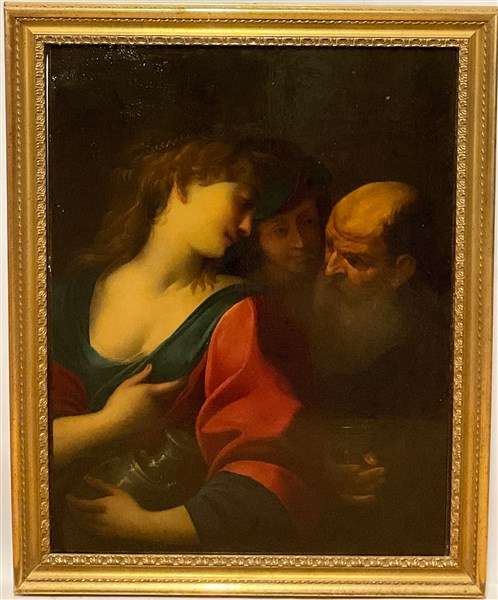 Scuola del XVIII secolo, Allegoria, olio su tela (cm 101x76) in cornice (difet