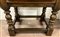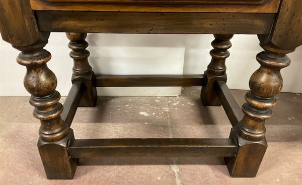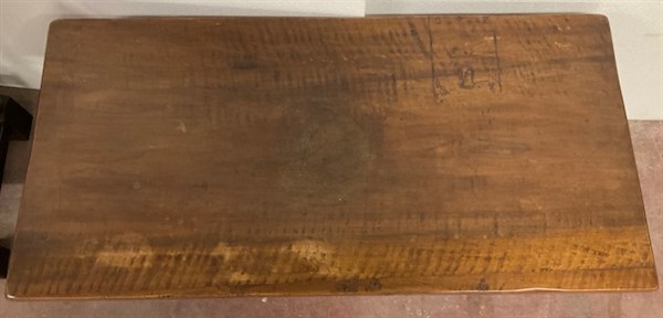 Lotto composto da due tavolini in legni vari di cui uno con cassetto, gambe riunite da traverse, misure diverse (difetti)