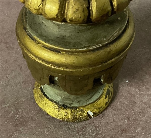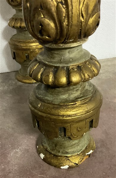 Tavolo da parete in legno intagliato dipinto e dorato con piano sagomato in mar
