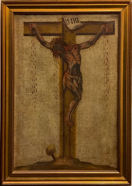 Ignoto, antico dipinto ad olio su tela raffigurante Cristo crocifisso, cm 62,5