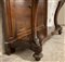 Tavolo da parete in legno con gambe mosse ed intagliate a motivi vegetali, pian