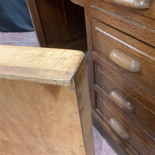 Scrivania da centro in legno con cinque cassetti di cui quattro in linea e due