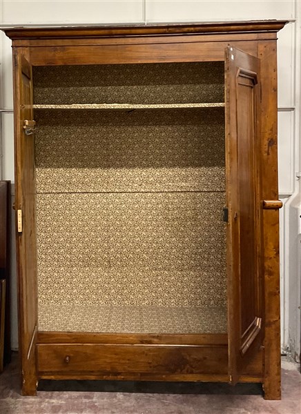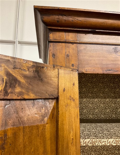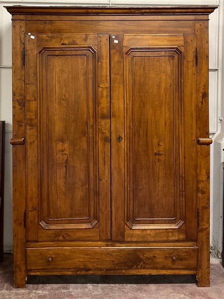 Lotto 1556 | Armadio in noce intagliato a due ante pannellate con cappello aggettante (cm 15