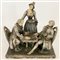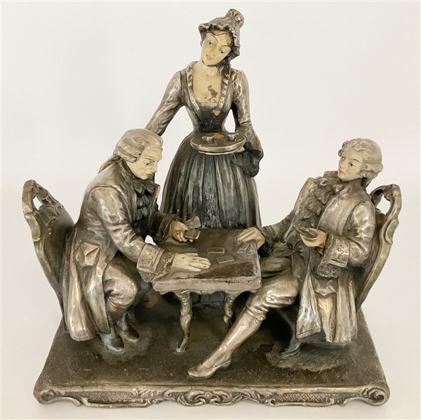 Scultura in terracotta dipinta e argentata raffigurante gentiluomini seduti al