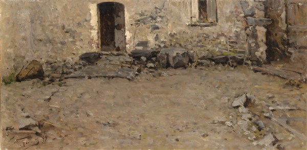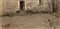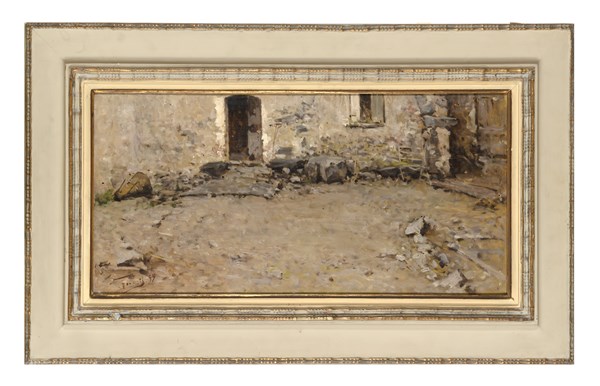 Achille Formis Befani "Il cortile" '99, olio su compensato (cm 29x59) Firmato