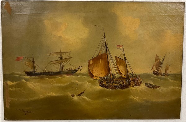 "Naufragio" 1902, olio su tela (cm 41x61) Firmato e datato in basso a sinistra (difetti)