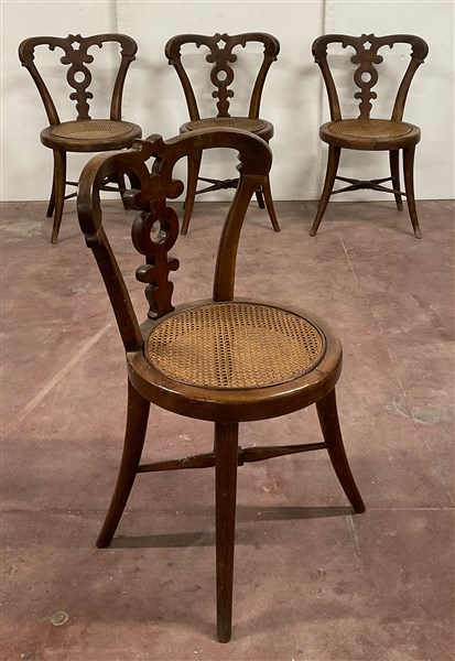 Lotto 1619 | Quattro sedie in legno intagliato con schienale sagomato e seduta circolare in