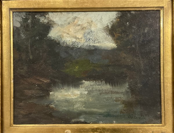 Italo Oslavia "Malinconia" olio su compensato (cm 30x34) Firmato in basso a dest