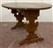 Tavolo fratino ad alette in legno tinto con piano ovale, gambe sagomate riunite