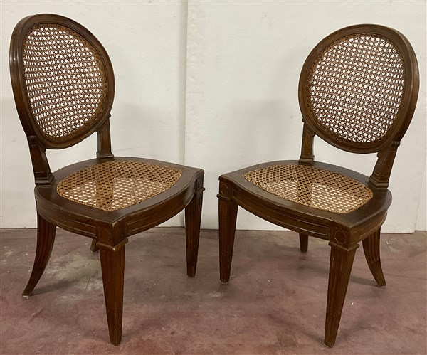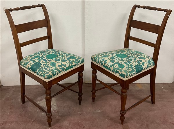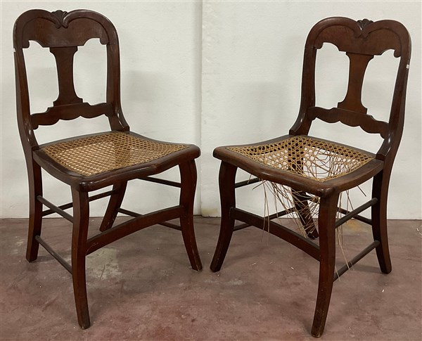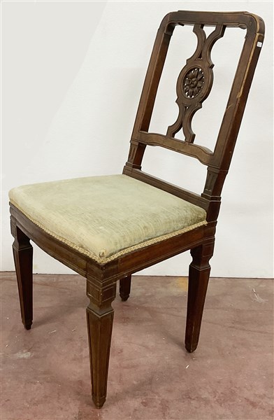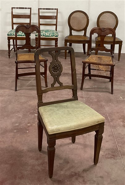 Lotto composto da tre diverse coppie di sedie unite ad una singola in legni vari. Secolo XIX (difetti e rotture)