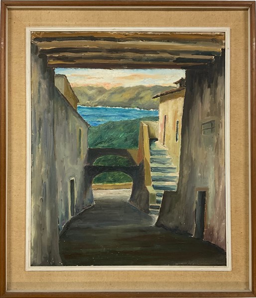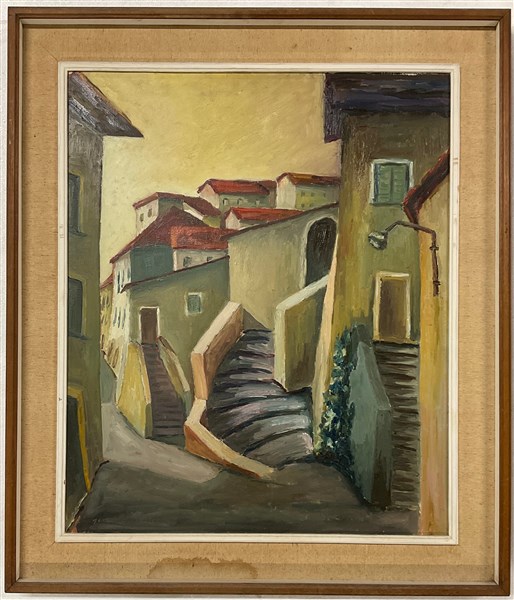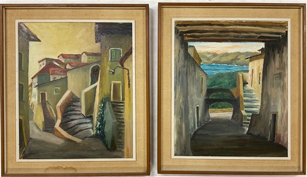Lotto composto da due oli su tela e una tecnica mista su carta raffiguranti pae