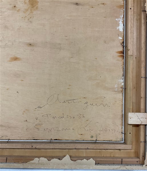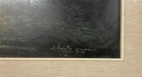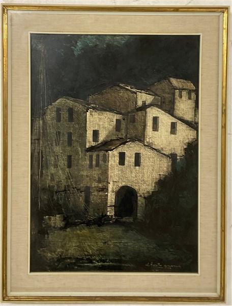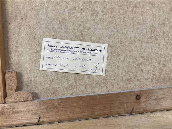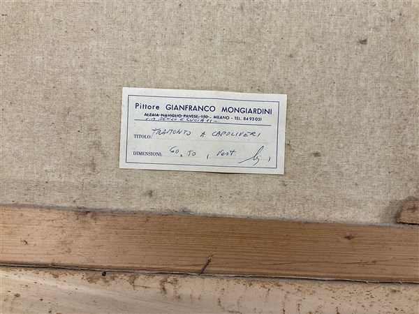 Lotto composto da due oli su tela e una tecnica mista su carta raffiguranti paesaggi, di misure diverse (misura max cm 69x49), due firmati Mongiardini con etichetta del pittore al verso e uno firmato Alberto Guerri