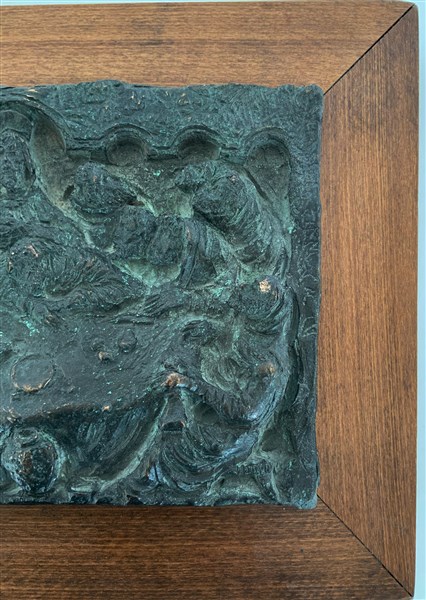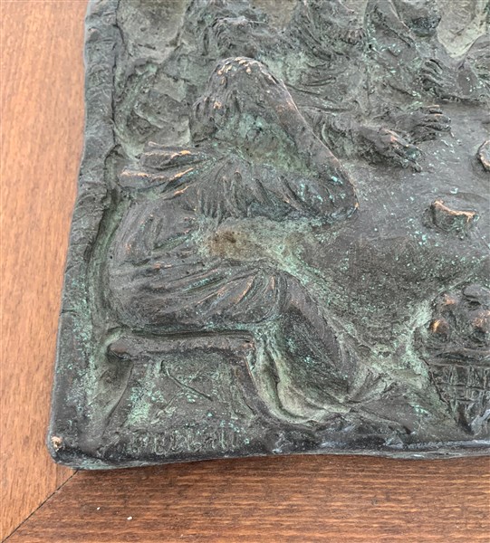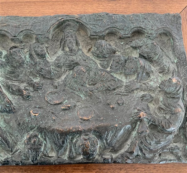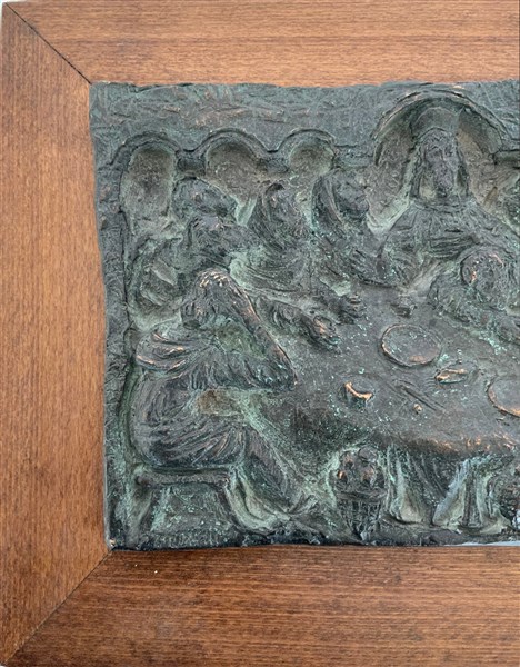 "Ultima cena" bassorilievo in bronzo montato su cornice in legno (misure bronzo cm 20,5x31,5) firmato in basso a sinistra