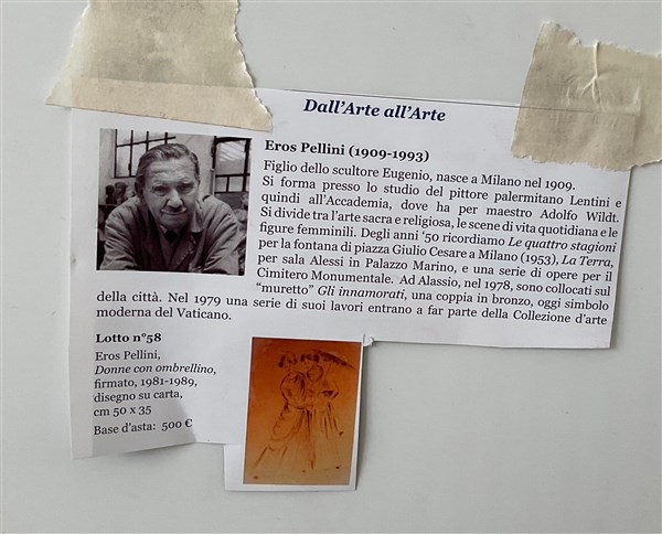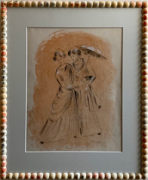 Eros Pellini "Donne con ombrellino" 1981 - 89, tecnica mista su carta (cm 44x34)
