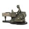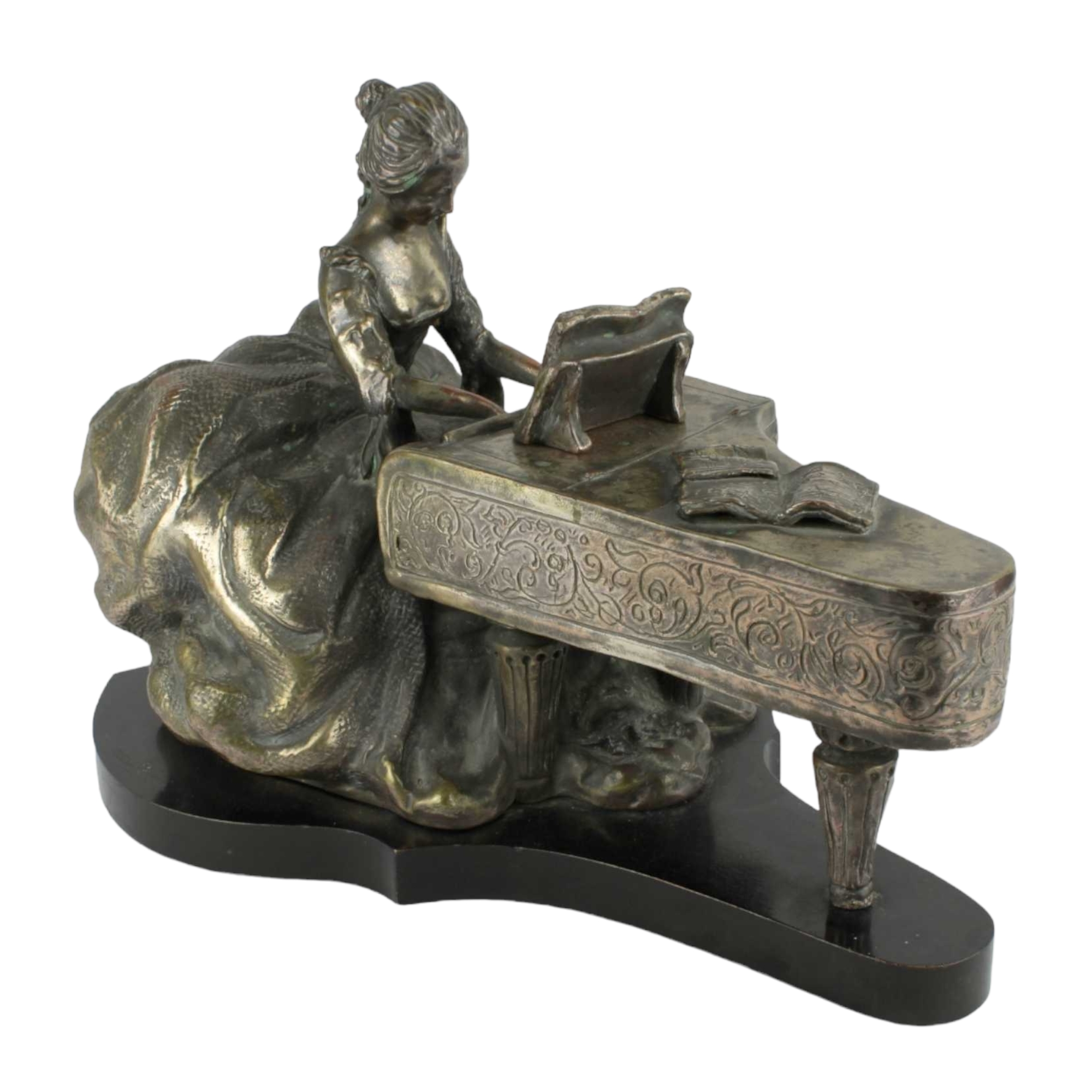 GRUPPO SCULTOREO in metallo patinato Raff Donna al pianoforte firmata in basso h cm 30 x 40 x 25
