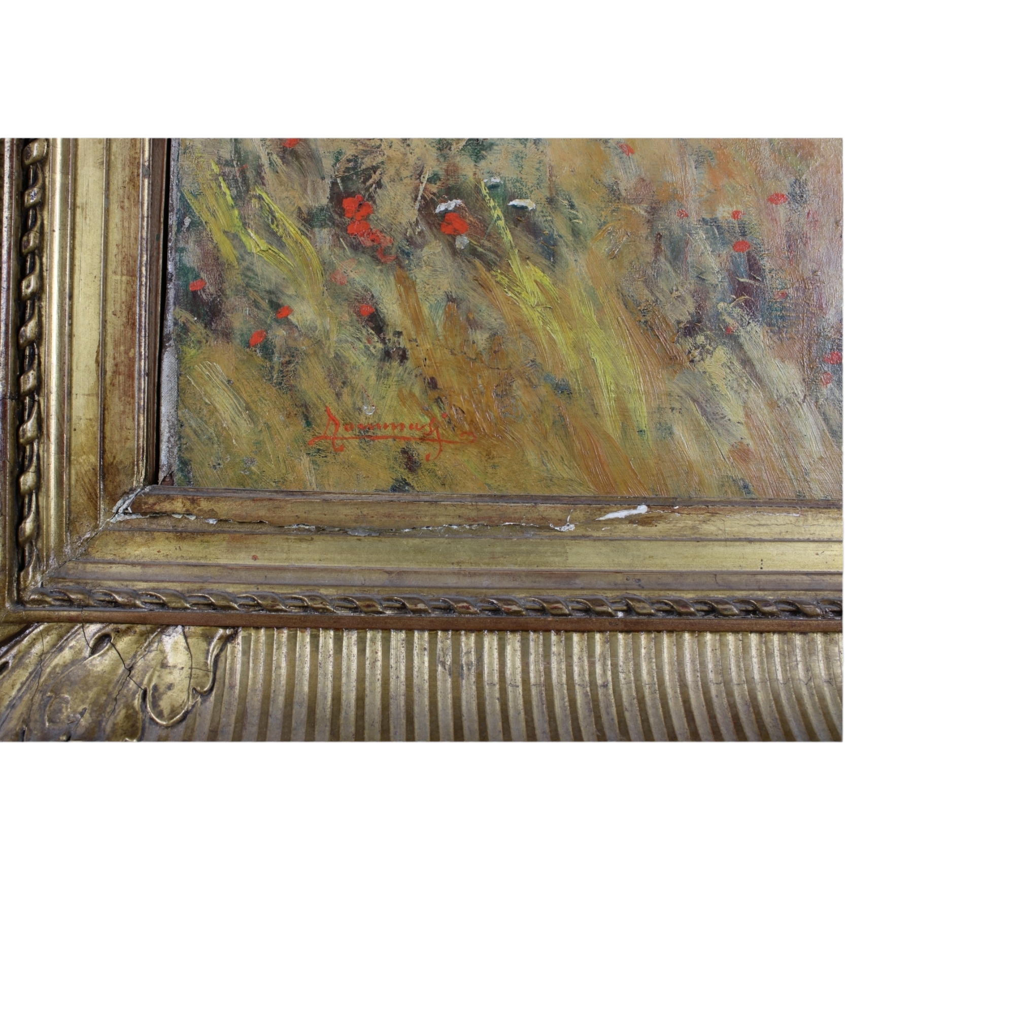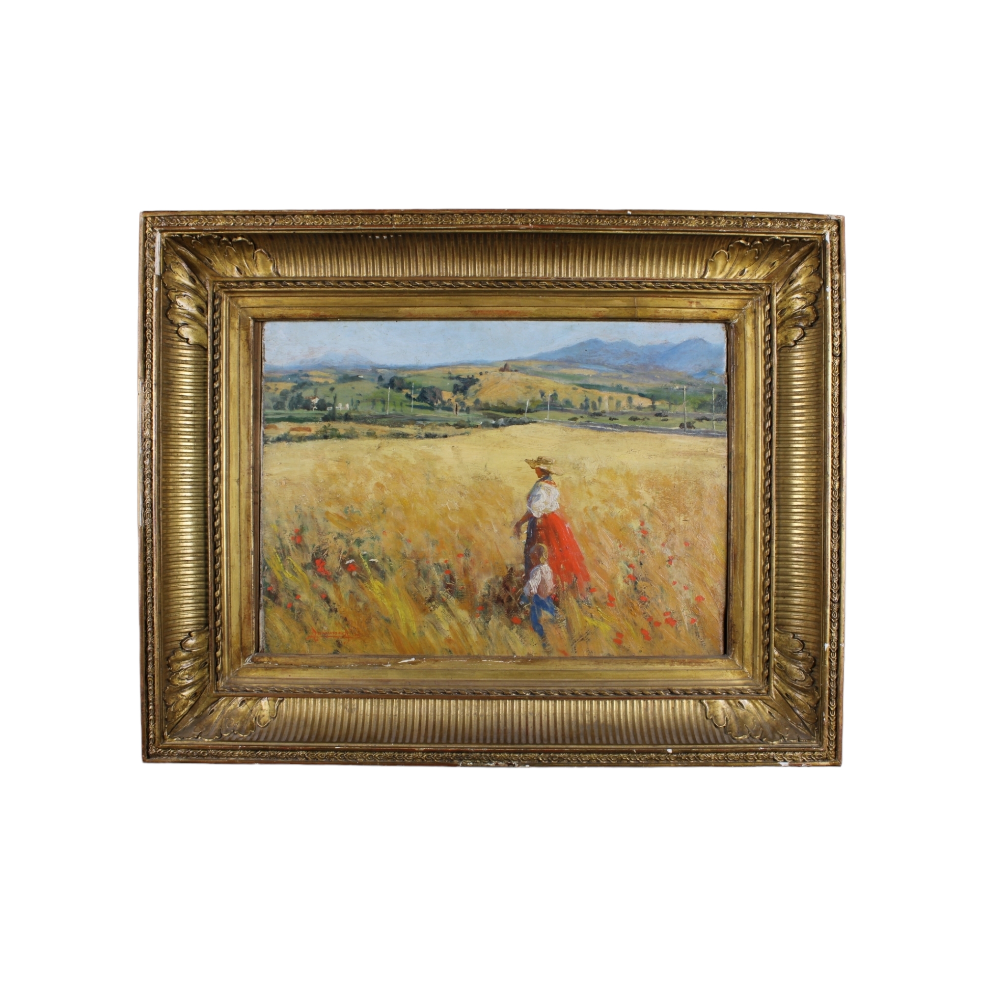 OLIO SU TELA Raff La Passeggiata tra il grano dentro cornice in legno dorato firmato Ludovico Tommasi Livorno 1866/ Firenze 1941 h cm 32 x 44 / cornice 52 x 65