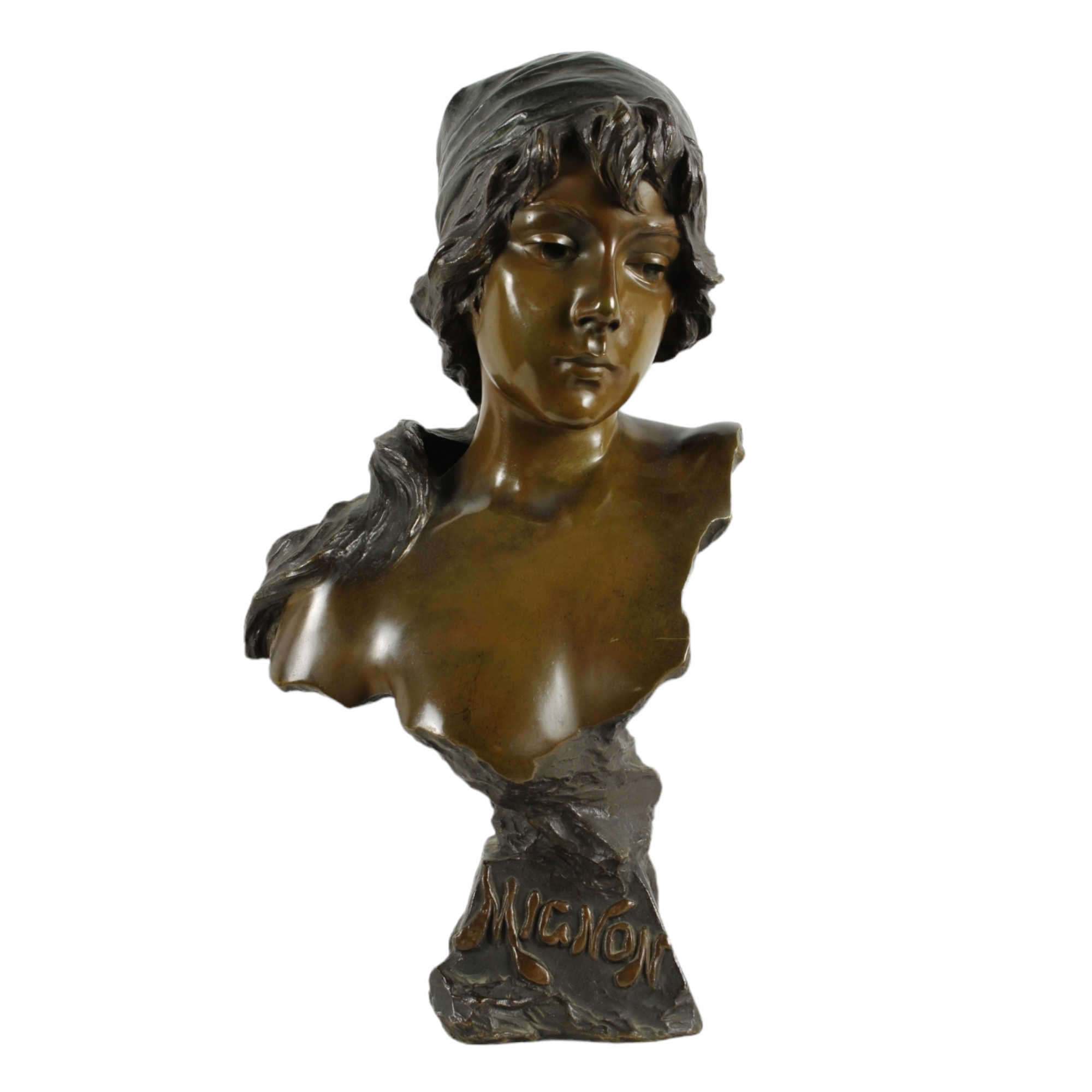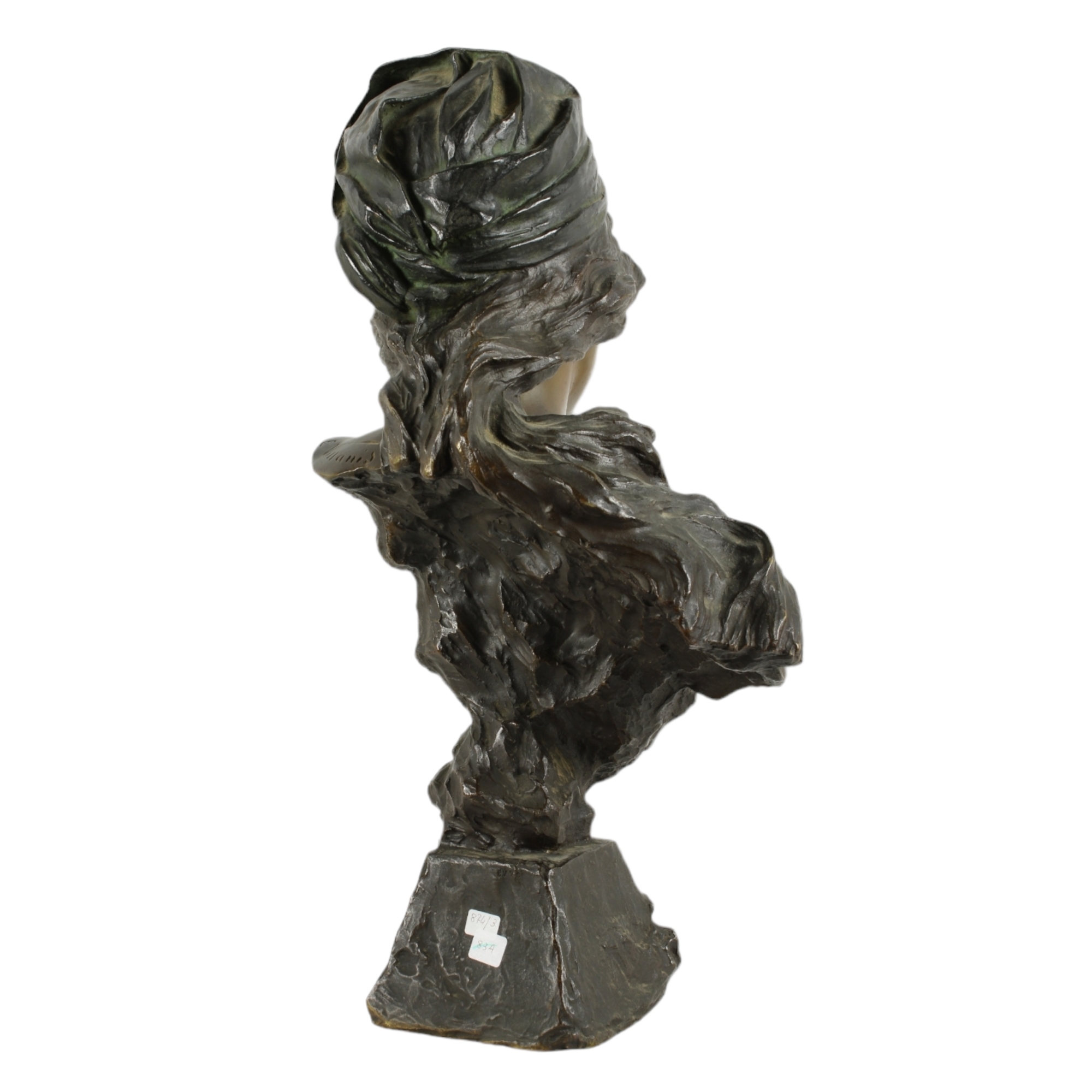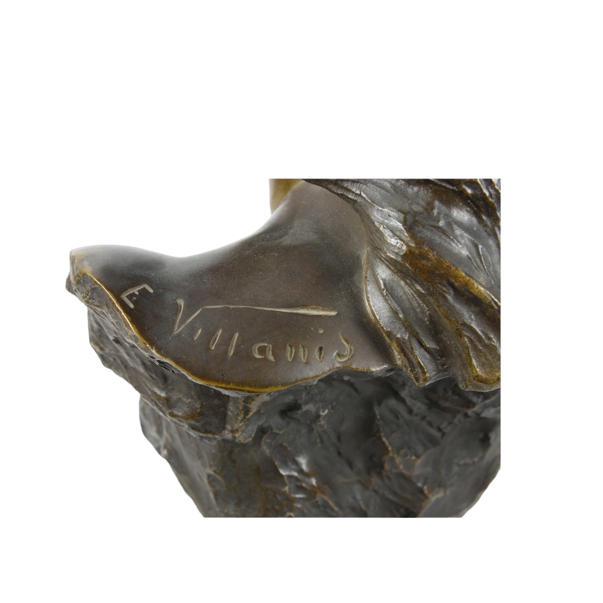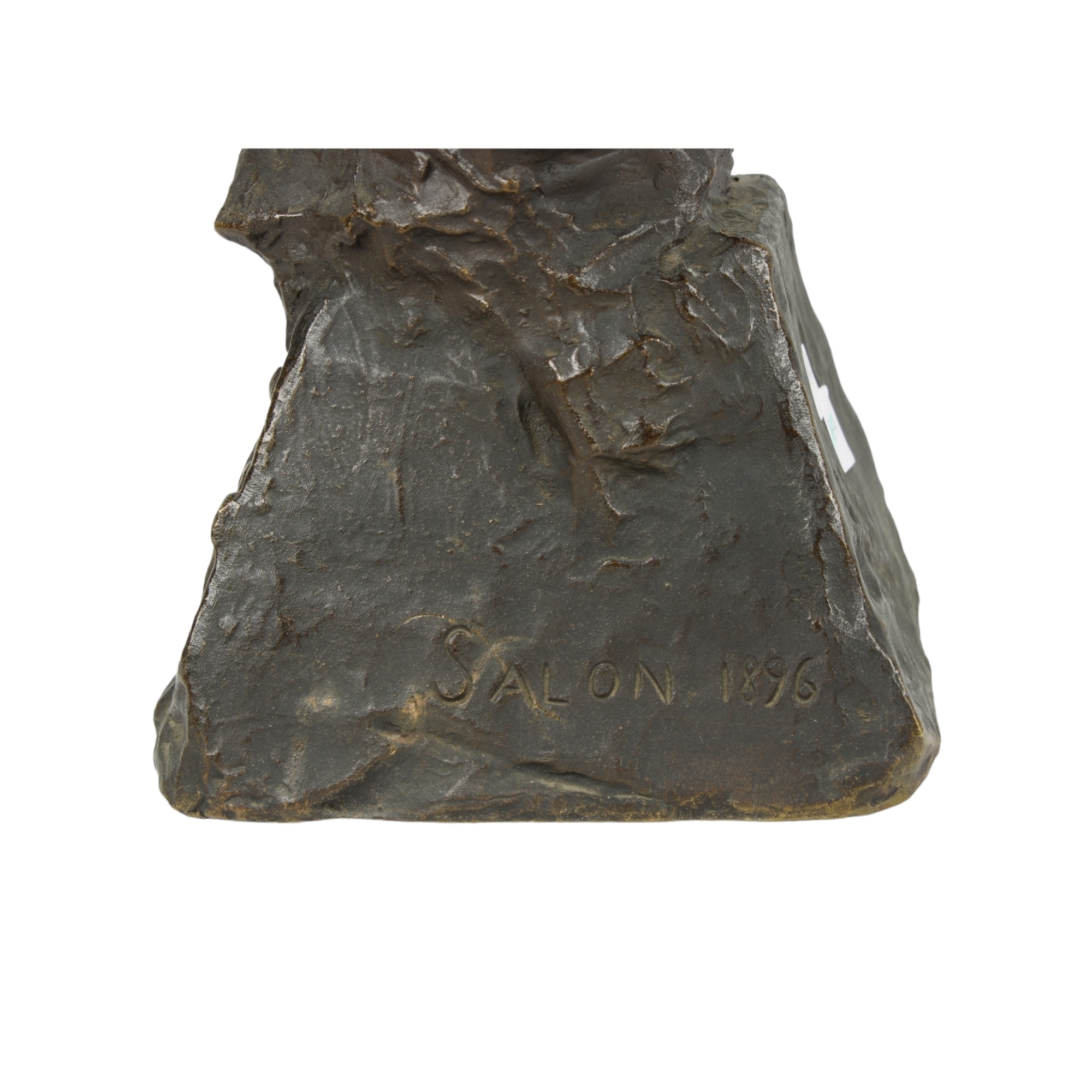SCULTURA IN BRONZO PATINATO Raff Mezzo busto di fanciulla reca scritta nella base Mignon firmata a destra Villanis Salon 1896 Francia h cm 58 x 31 x 20