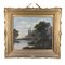 OLIO SU TELA Raff Paesaggio con case e lago dentro cornice in legno dorato Francia XIX secolo h cm 40 x 50 / cornice h cm 60 x 68