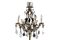 PIANTANA A SEI LUCI in ferro dorato arricchita da pendenti in cristallo e vetri colorati manifattura italiana XIX / XX secolo h cm 187 x 53