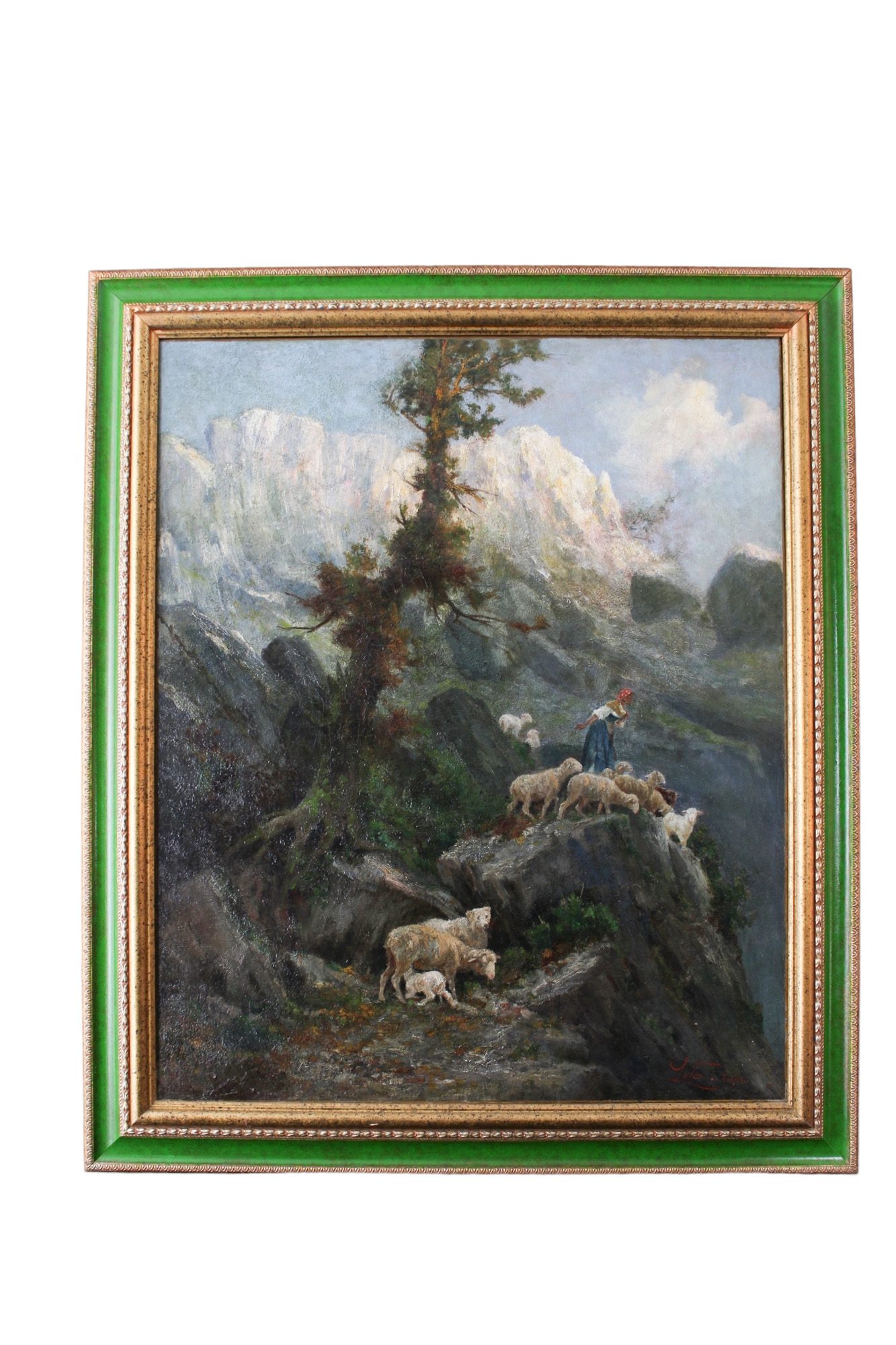 ANTONINO LETO (MONREALE 1844-ISOLA DI CAPRI 1913) OLIO SU TELA Al pascolo sul monte Solaro, Capri h cm 122 x 100 / cornice h cm 146 x 124