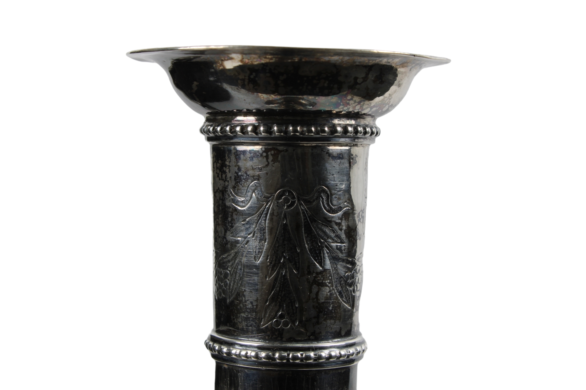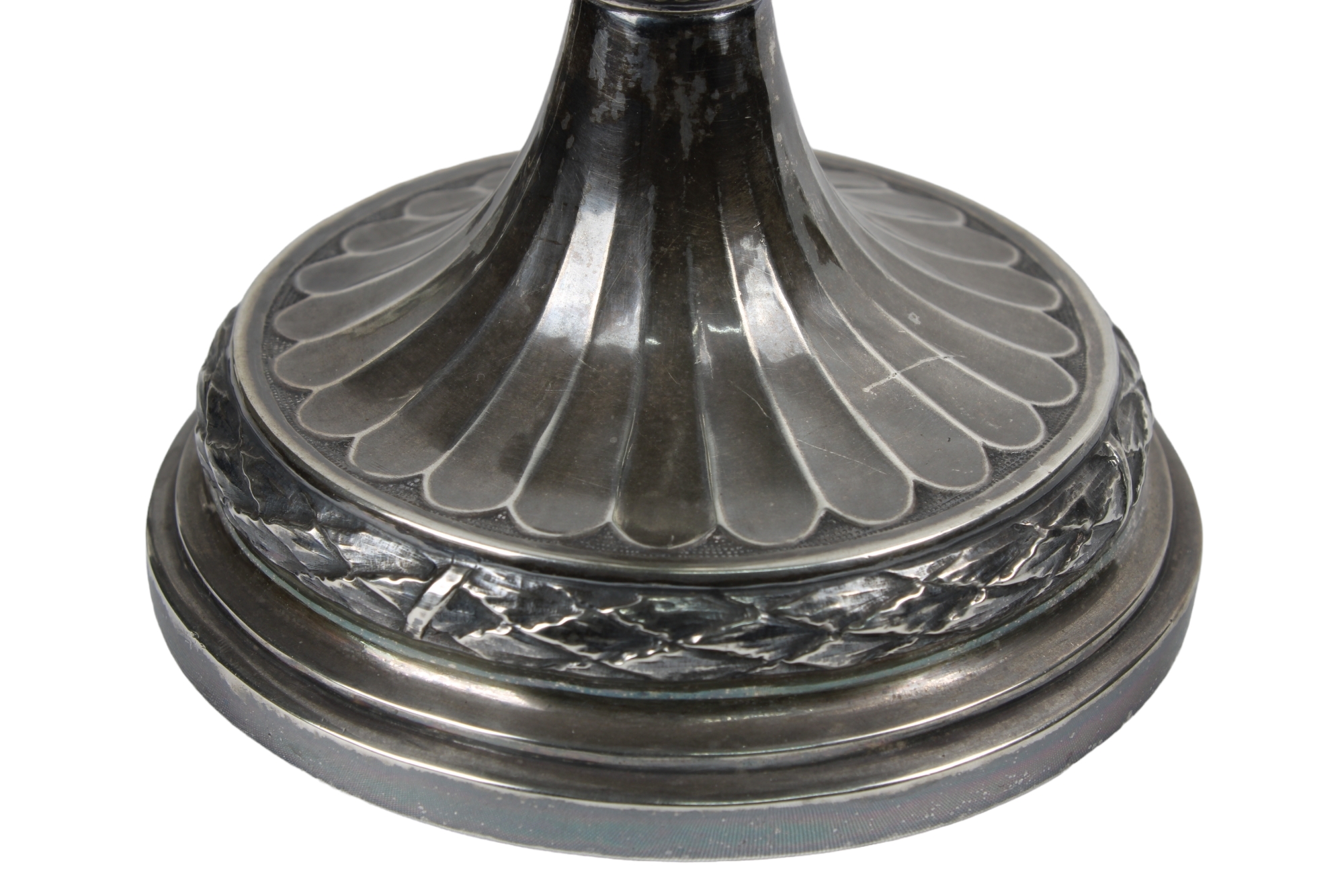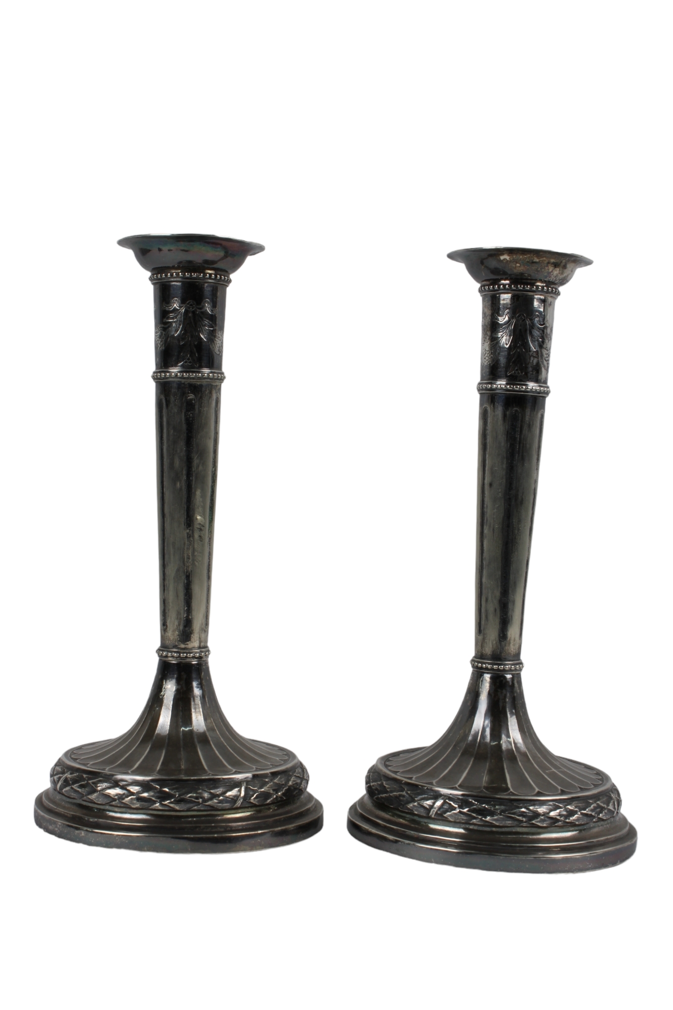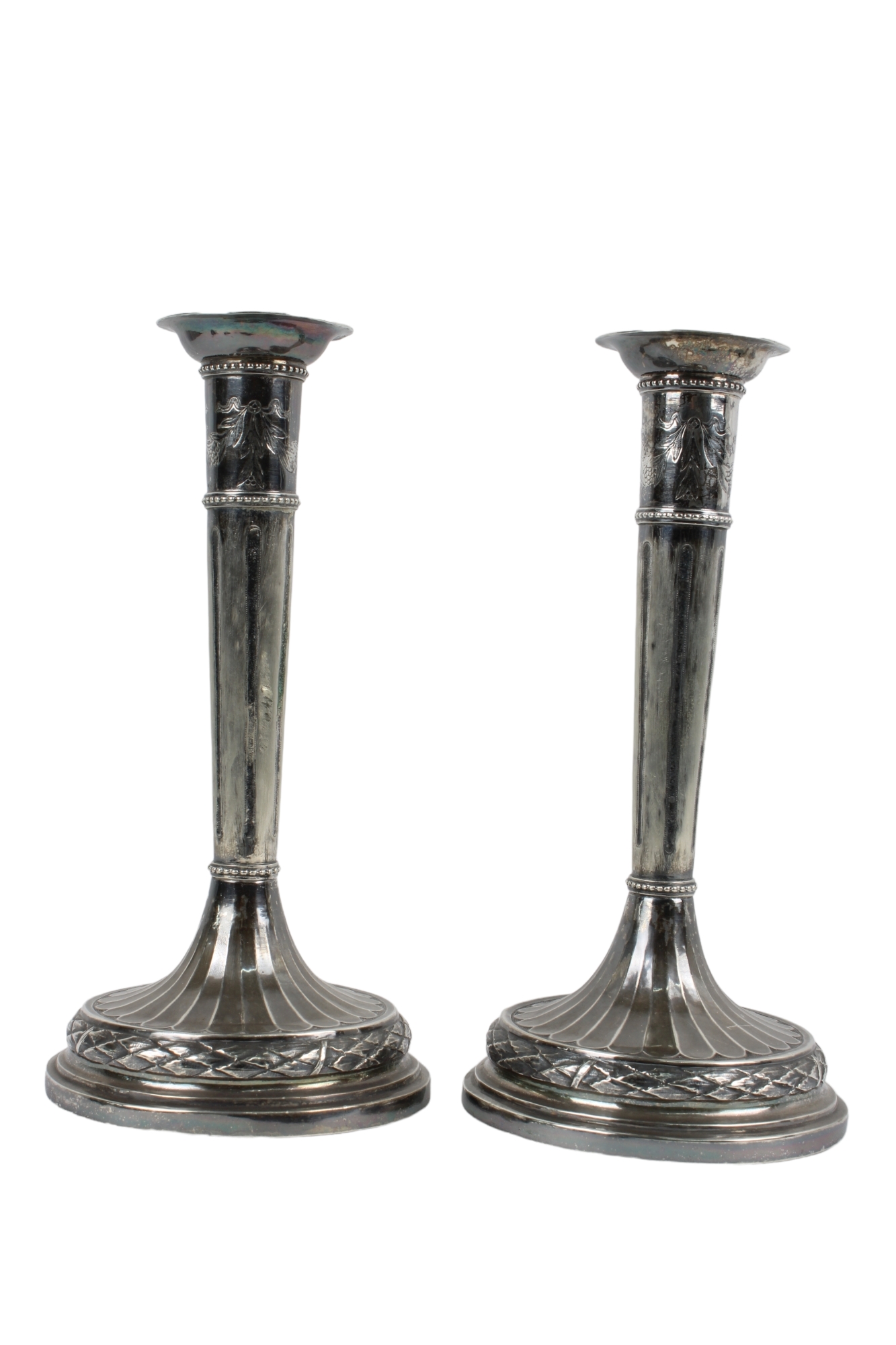 COPPIA DI CANDELIERI LUIGI XVI in argento punzonati e cesello a festoni Roma fine XVIII secolo h cm 24 x 12