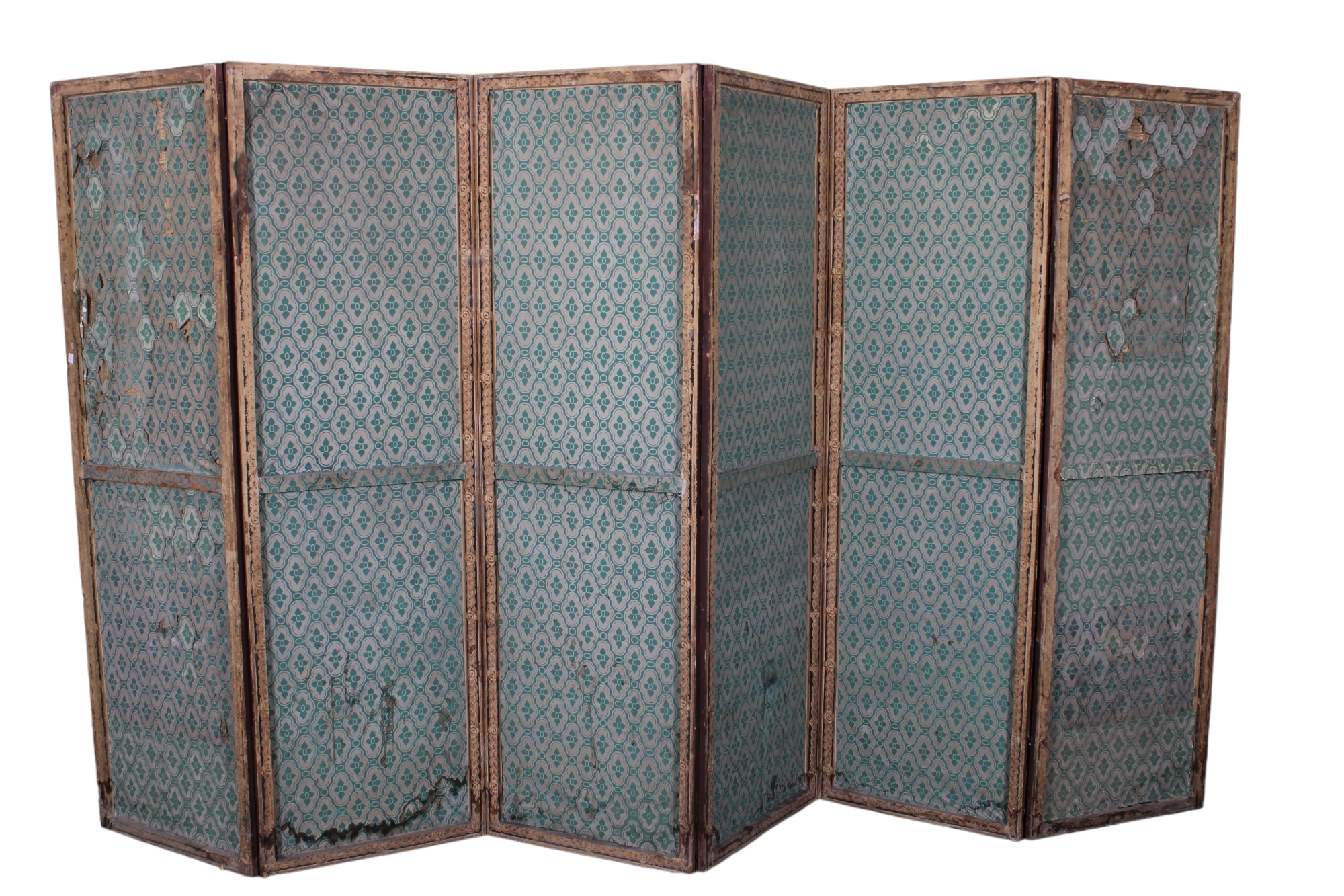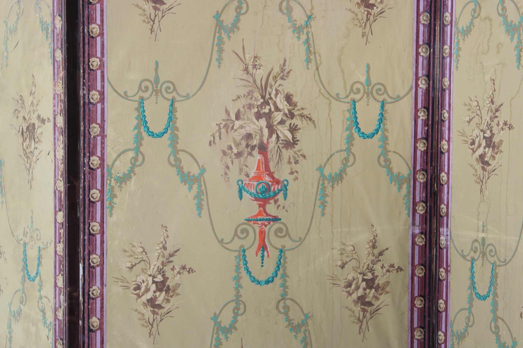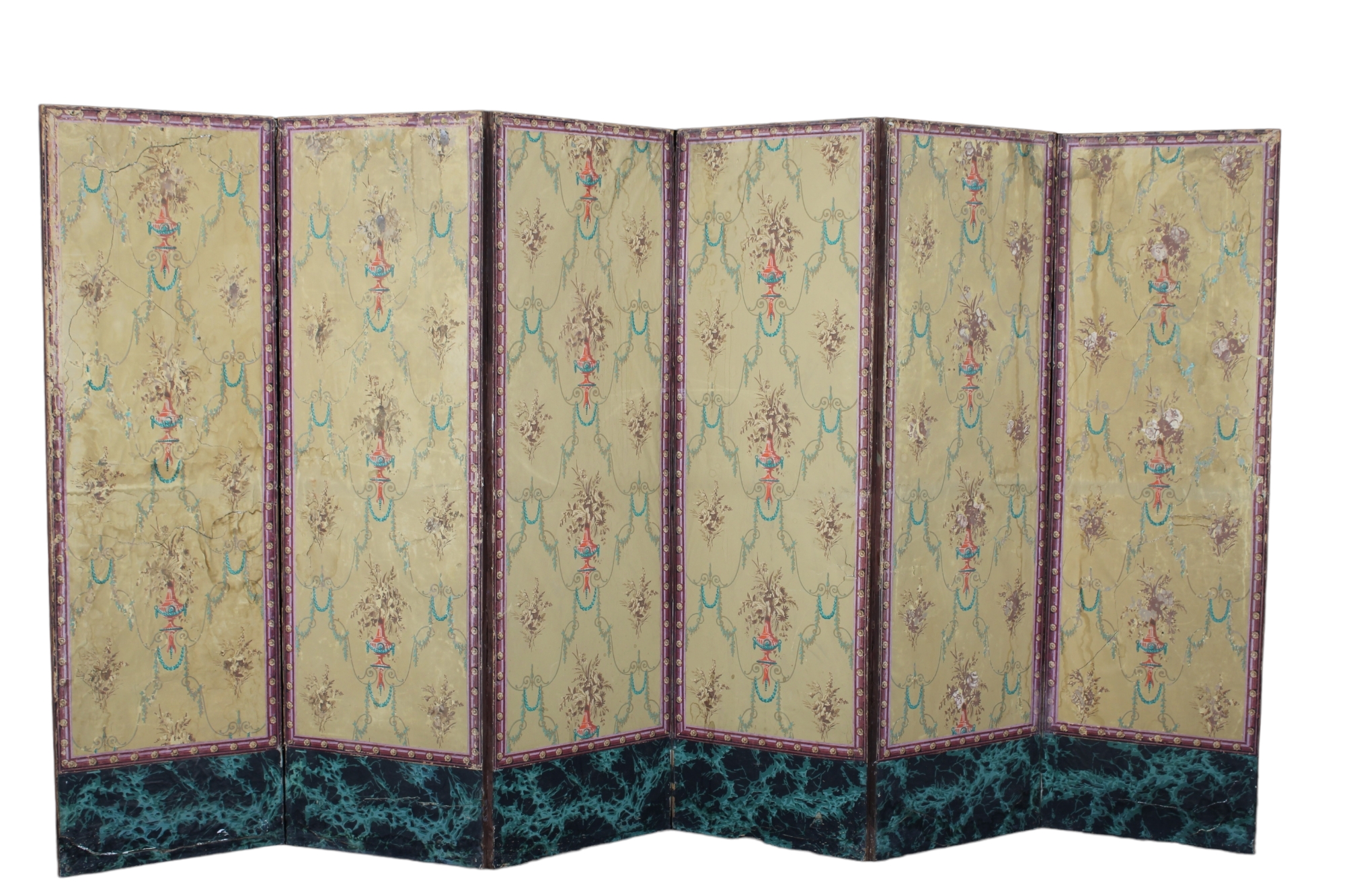 PARAVENTO A 5 ANTE in papier peint decorato a motivi floreali a finto marmo Francia XVIII secolo h cm 176,5 x 320