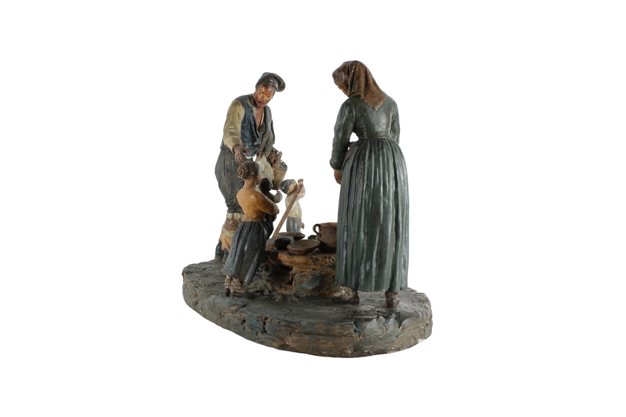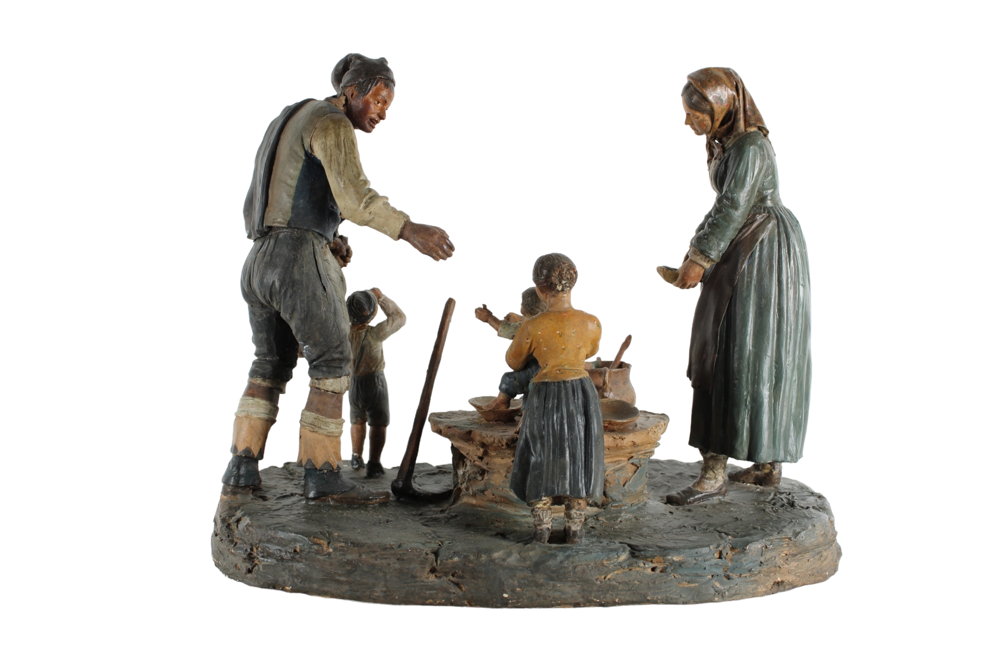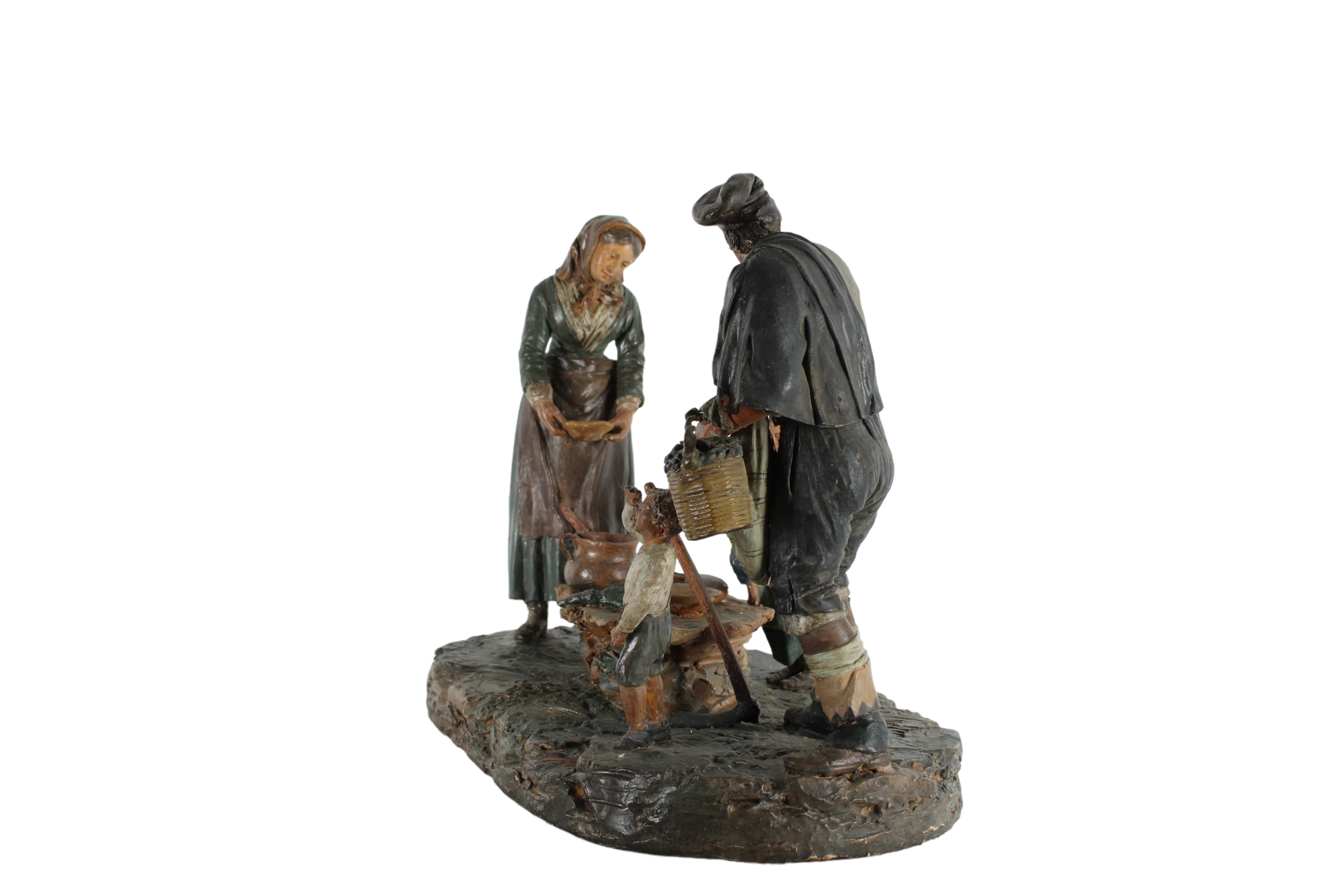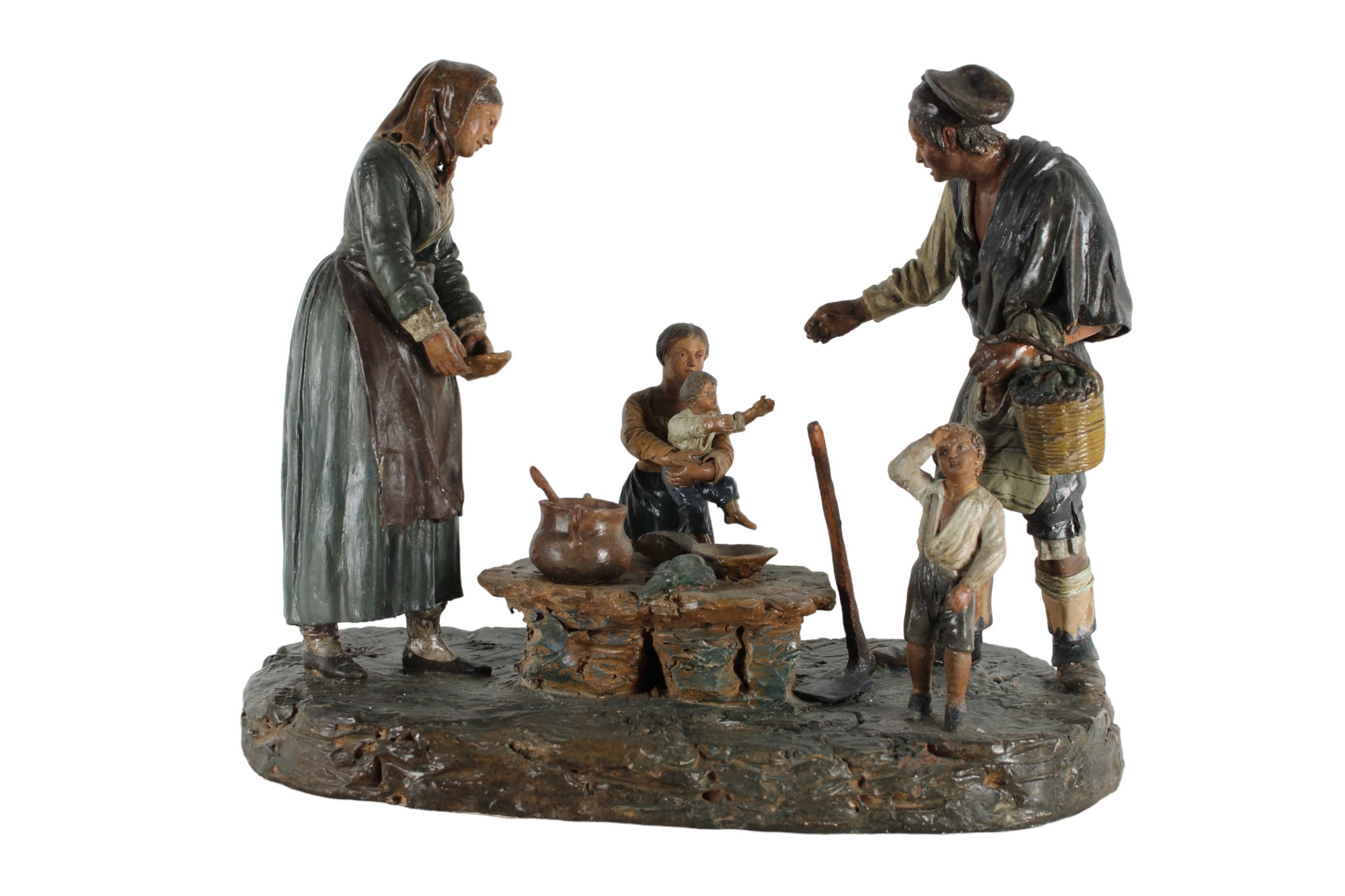 GRUPPO IN TERRACOTTA cerchia dei Vaccaro Raff La famiglia dei contadini Caltagirone 1850 circa h cm 26 X 20 X 21