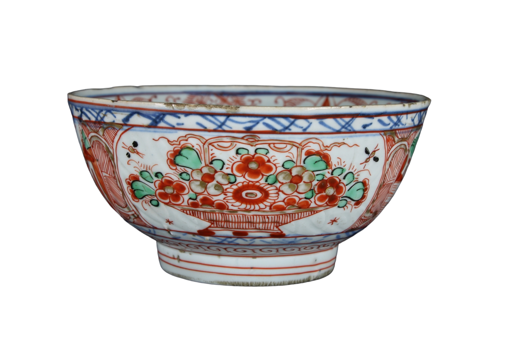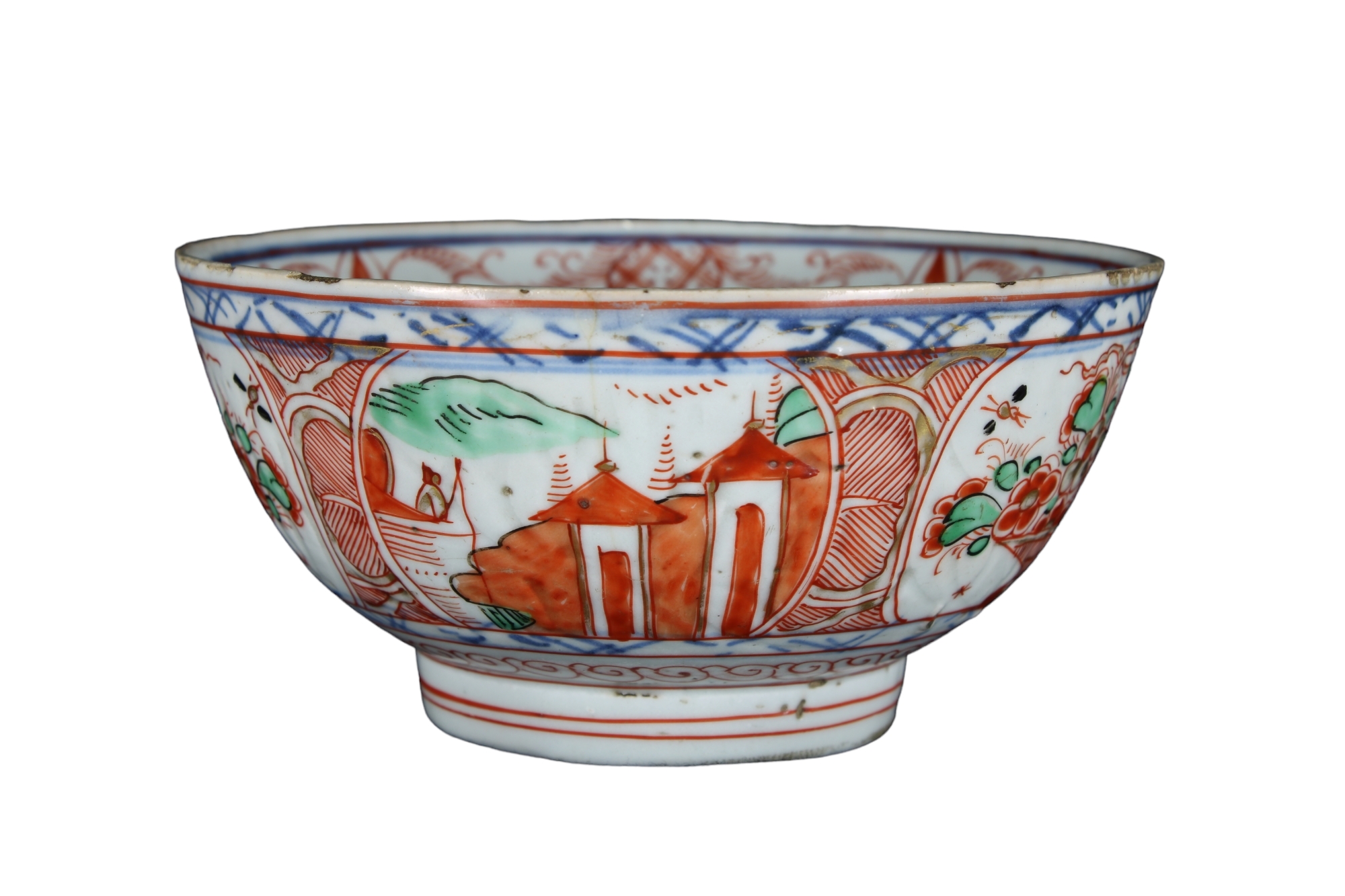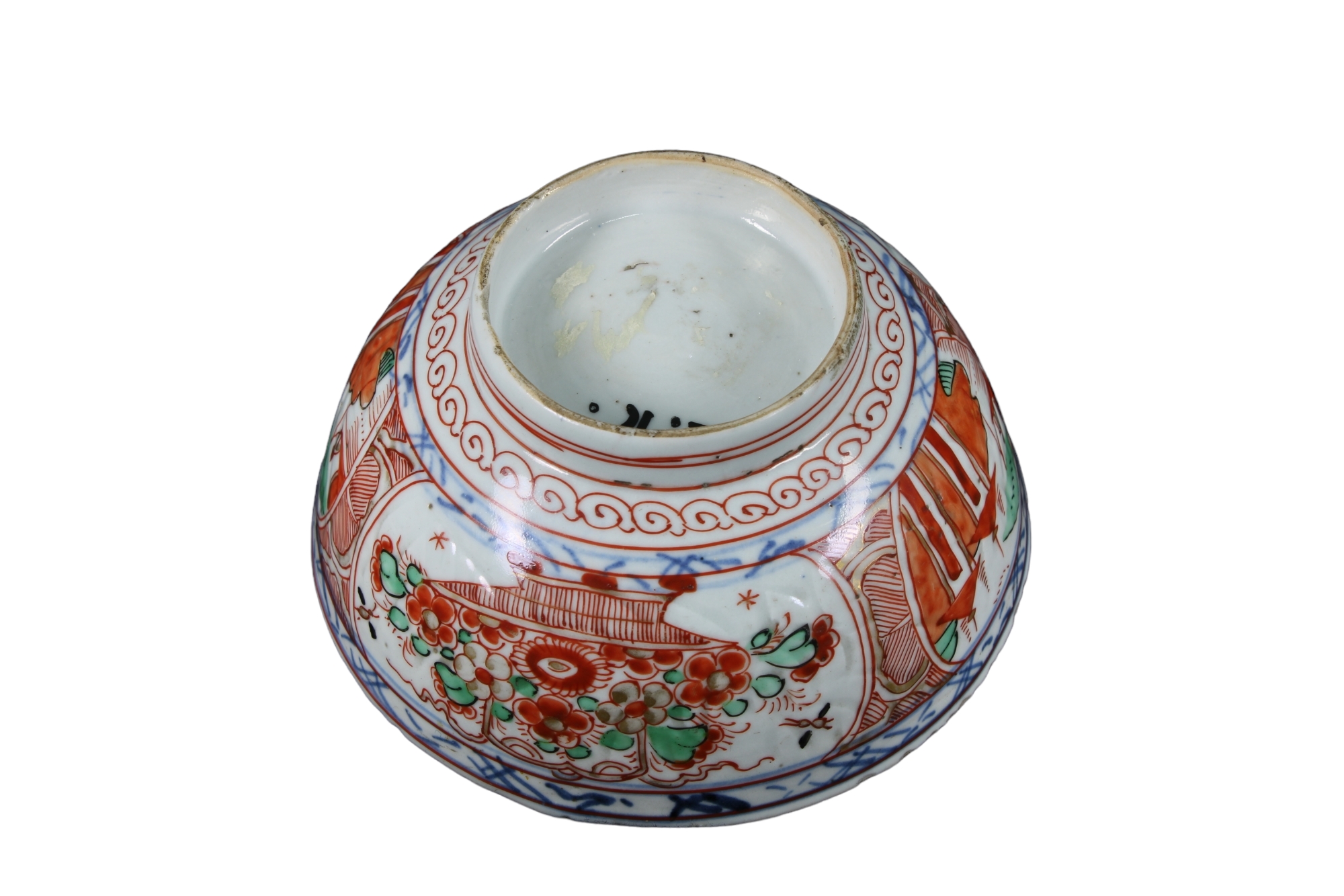 COPPA in porcellana dipinta e decorata a fiori e personaggi con lumeggiature in oro Cina XVIII secolo h cm 7 x 14 filee