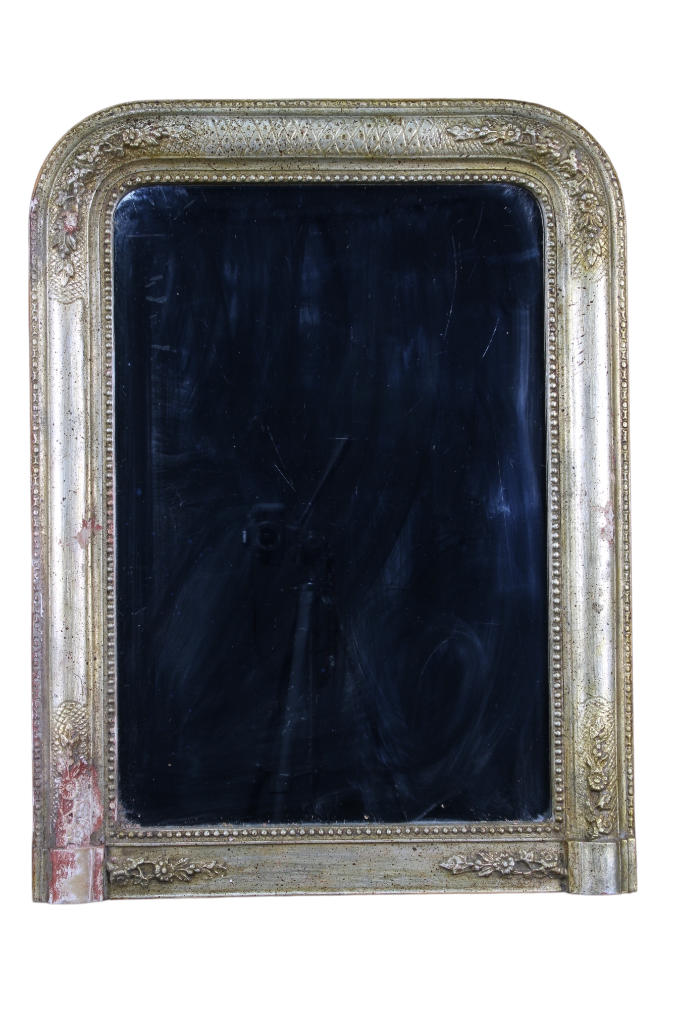 SPECCHIERA in legno inciso e pastiglia decorata a motivi floreali, dorata ad argento e mecca Sicilia XIX secolo h cm 88 x 67