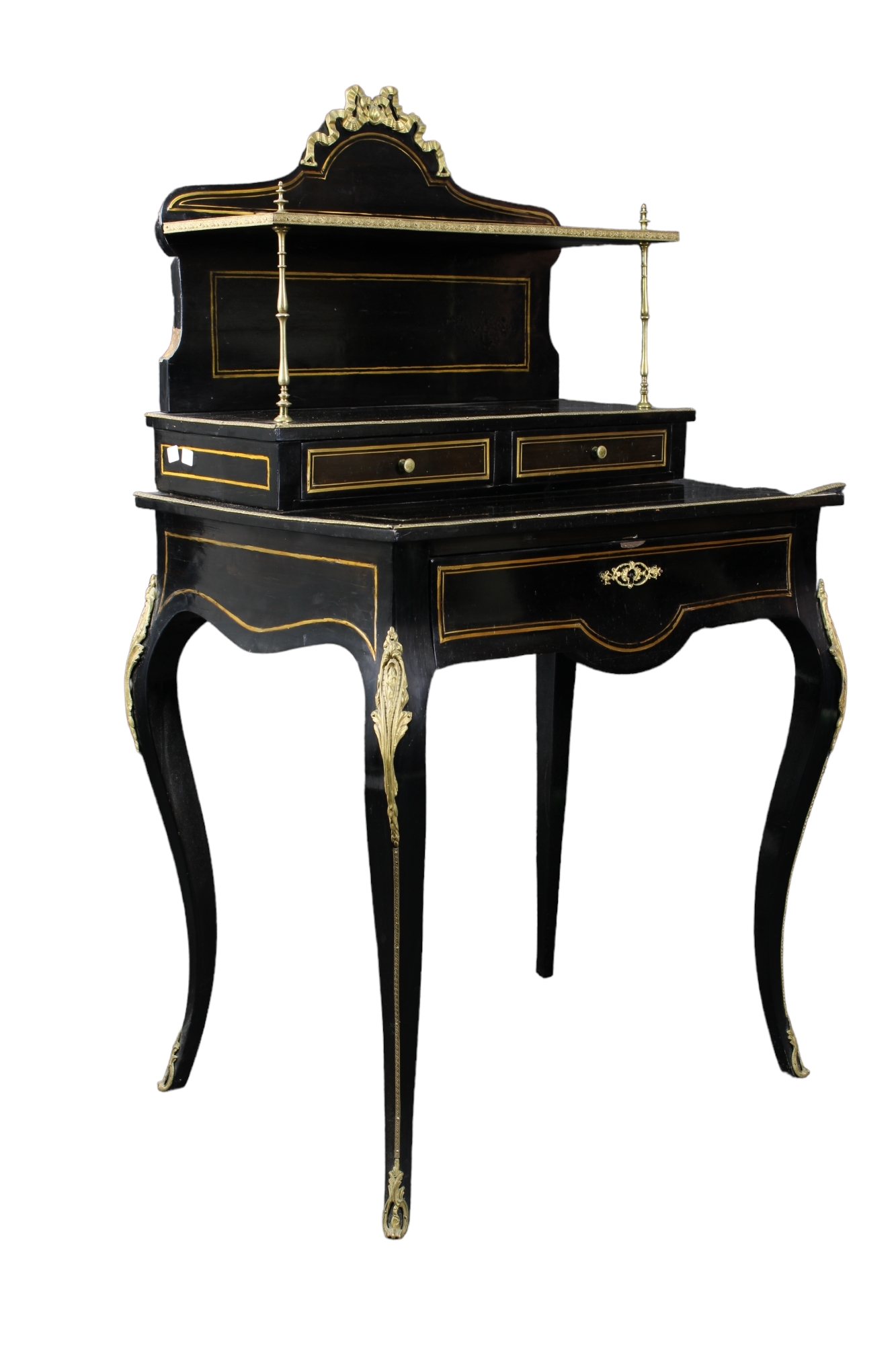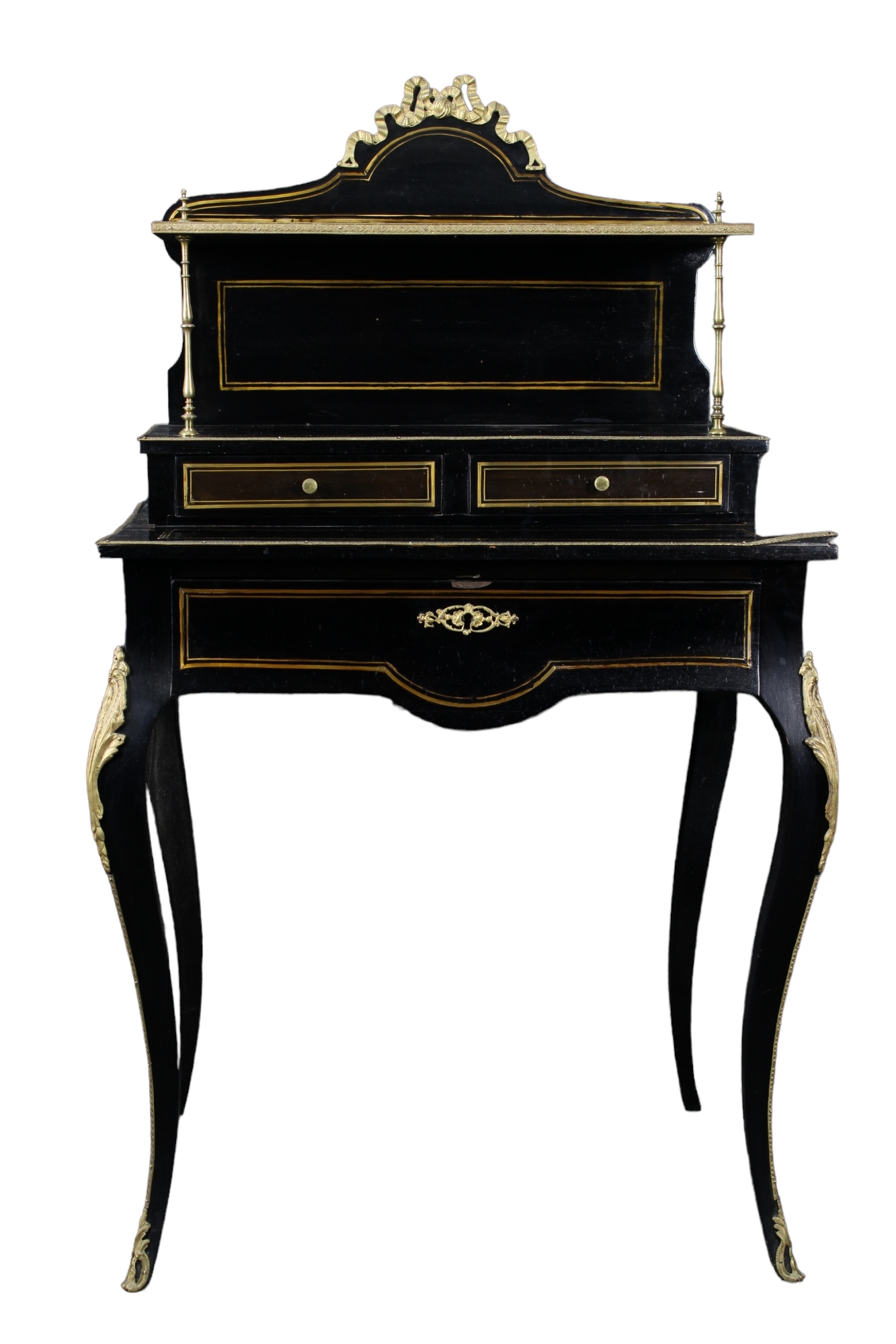 SCRITTOIETTO in legno ebanizzato con perfili in ottone e applicazioni in bronzo patinato Francia XIX secolo h cm 16 x 74 x 53