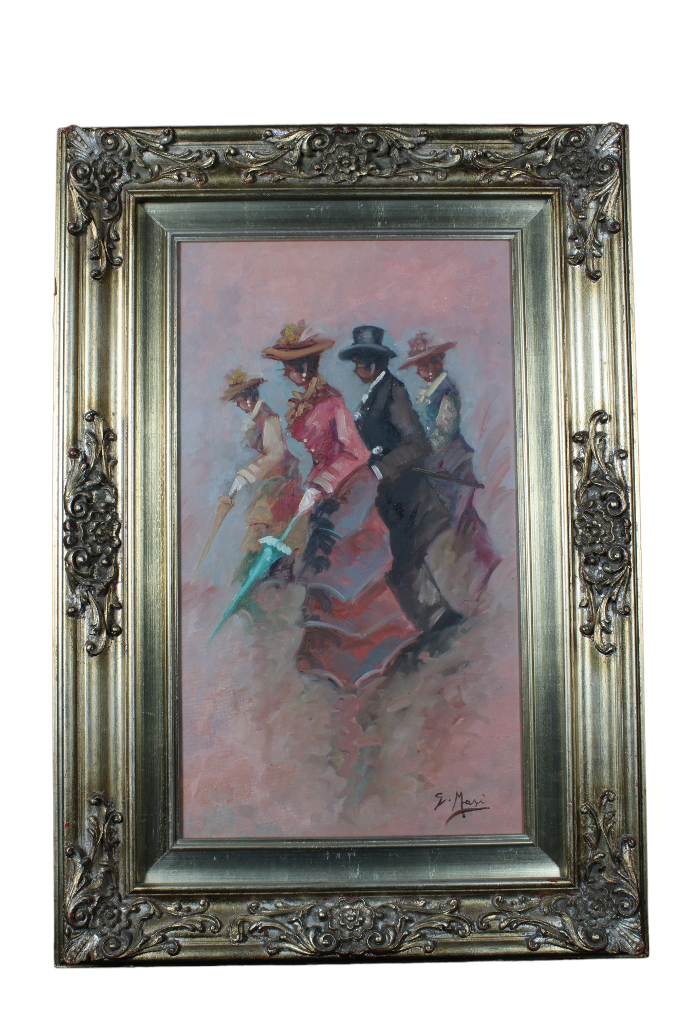 OLIO SU TELA Raff Personaggi a firma G.Masi h cm 60 x 35