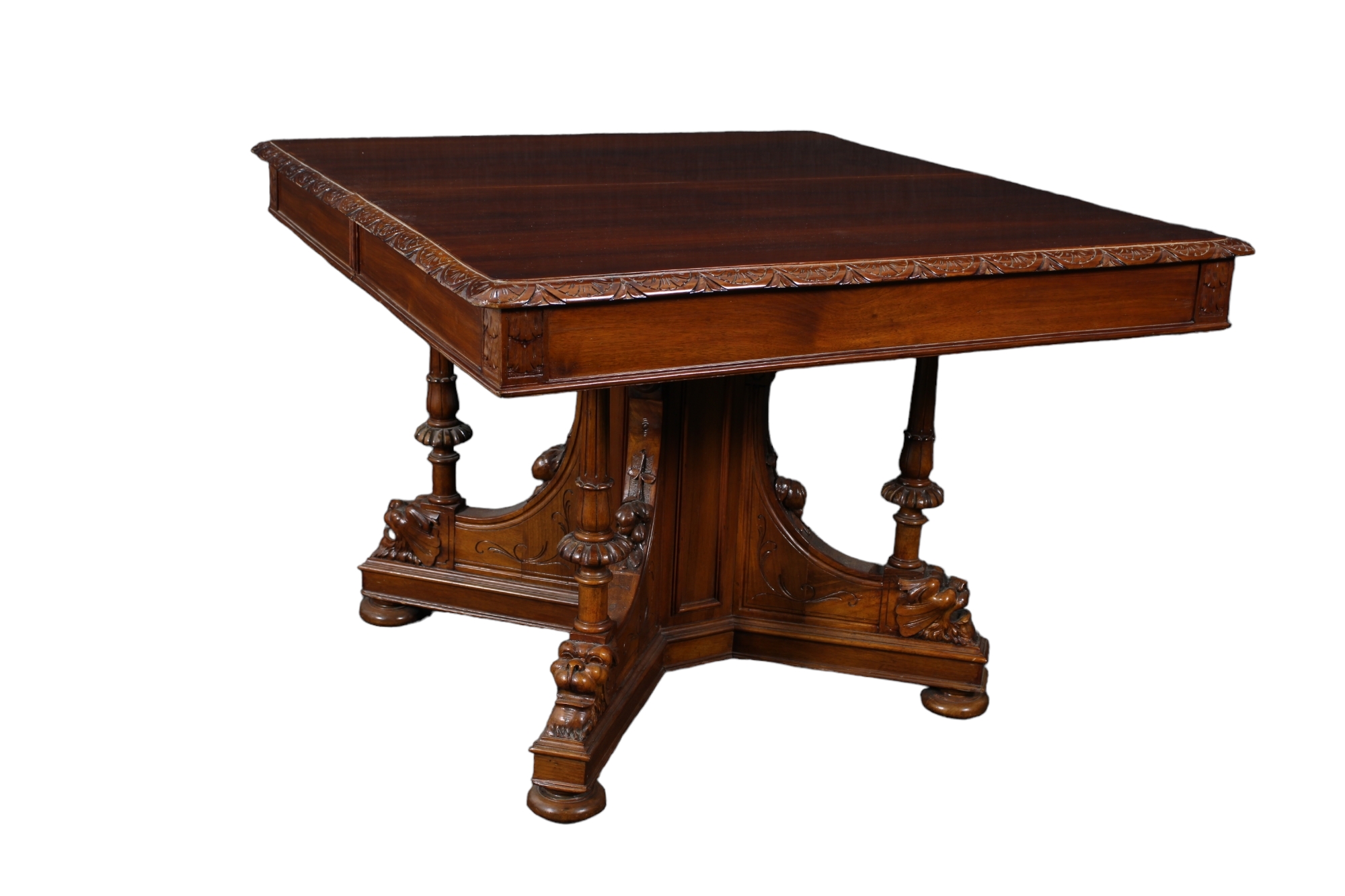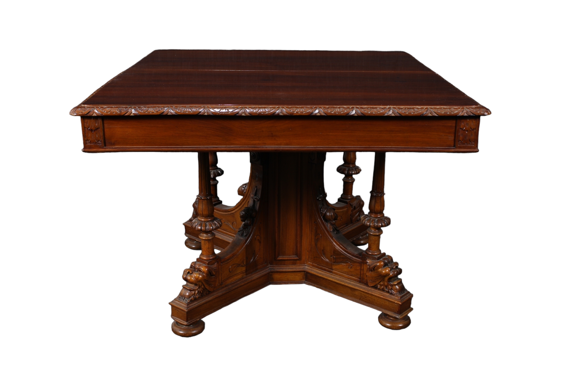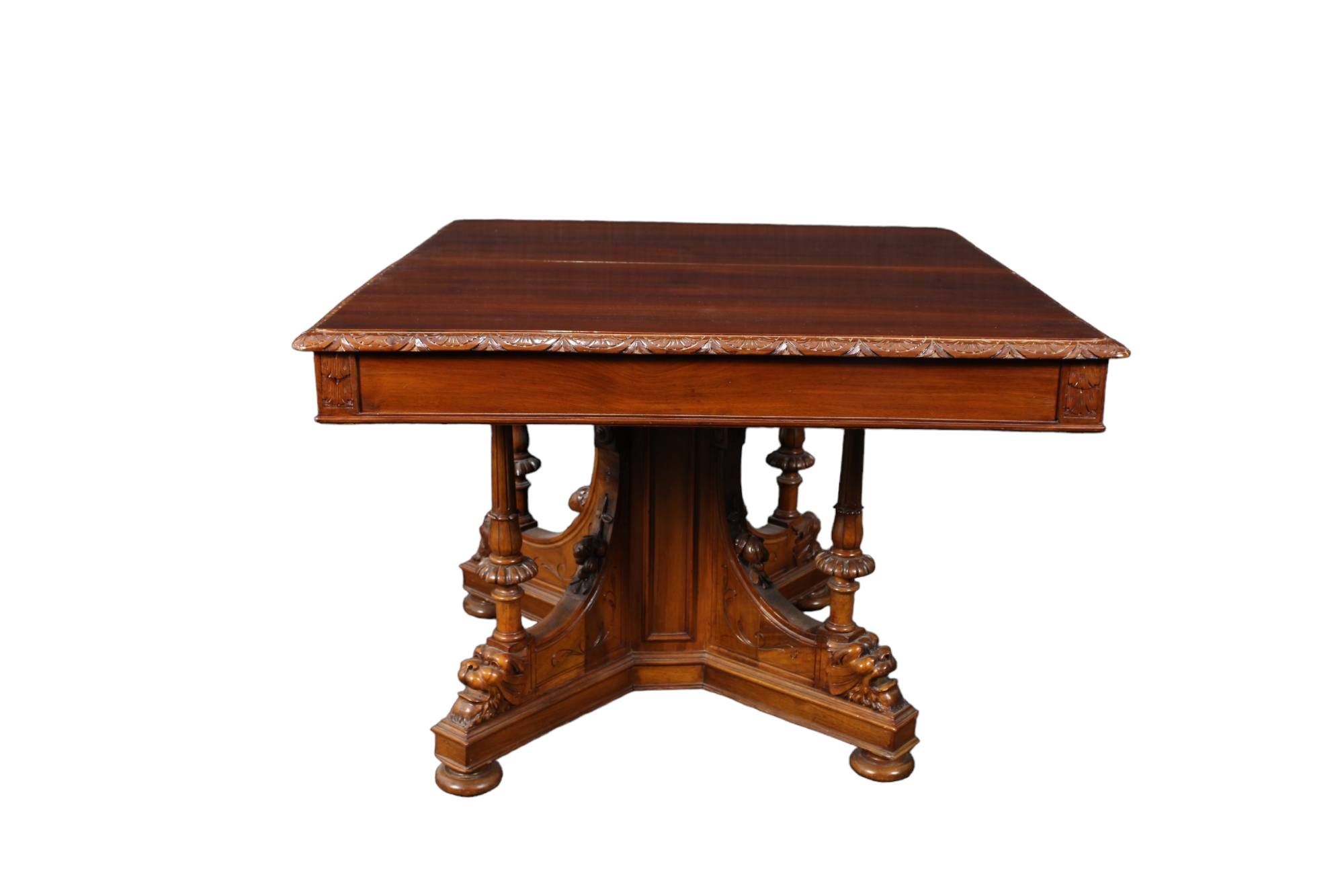 TAVOLO ALLUNGABILE in noce piede finemente intagliato Sicilia XIX secolo h cm 77 x 100 x 107