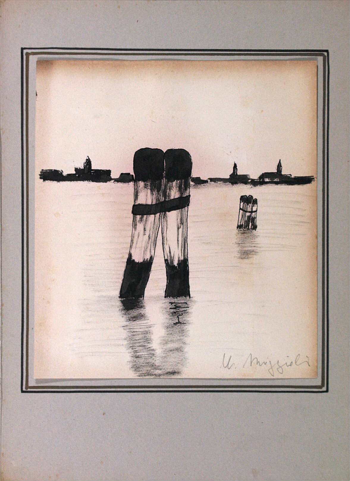 Firma del critico d'arte Nino Barbantini sul retro, dicitura ""Cartella Moggioli di Ca Pesaro"" sul retro.