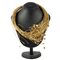 Collier con fili animati in seta dorata e piccoli sassolini dorati.