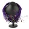 Collier con fili animati in seta colore viola e pietre dure di diverso colore.