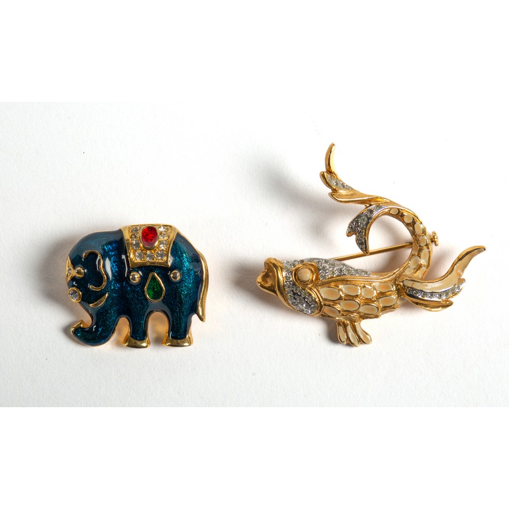 Spilla a forma di pesce in smalto color avorio e zirconi Vogue Bijoux, marchio di produzione.