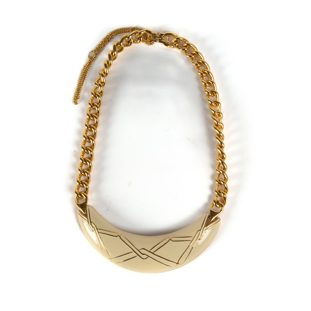 Girocollo a mezza luna in metallo dorato e smalto color crema.