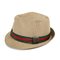 Cappello in cachemire e lana nei toni beige con nastro rosso e verde, taglia M, marchio di produzione.