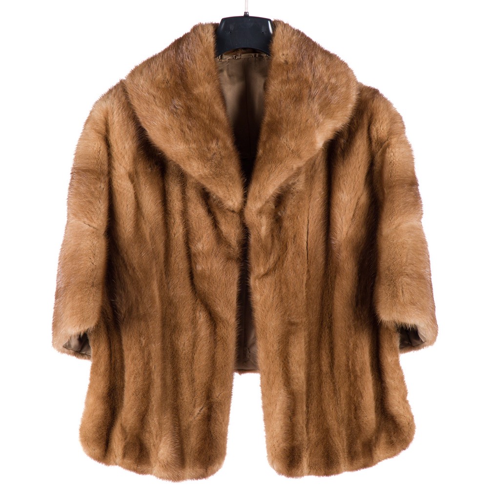 Copri spalle in visone color miele a lavorazione orizzontale.