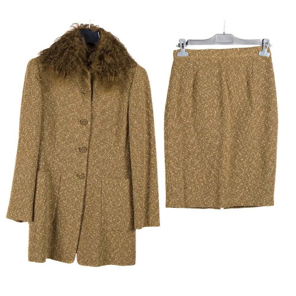 Tailleur in boucle con collo in mongolia, colore verde. Taglia 44.