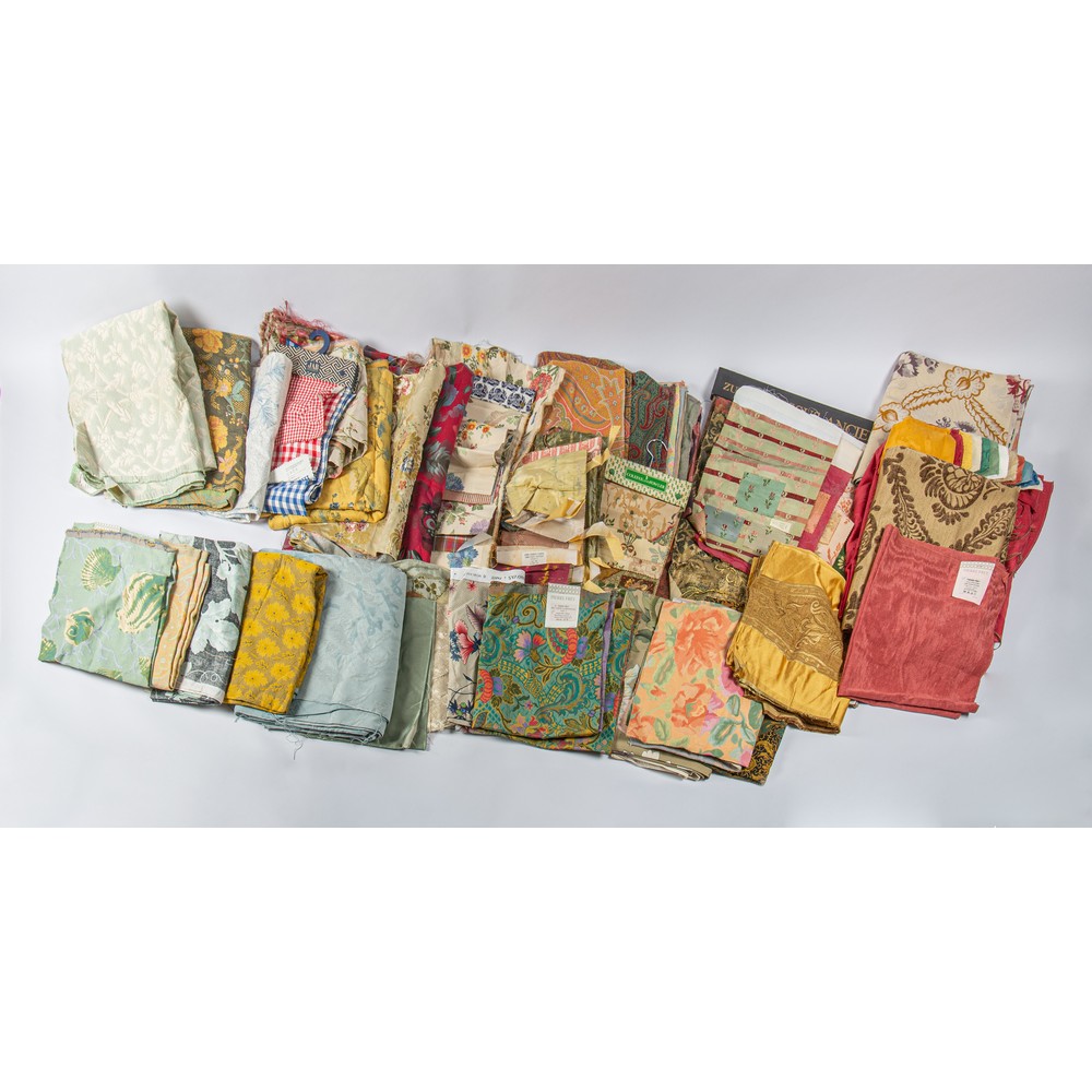 10 tirelle Manuel Canovas, Zuber, 2 grandi scampoli, Contre Marque, 2 scampoli broccato di seta, 6 tirelle Pierre Frey, Lisio, 2 tirelle Braquenie, Jab, Colefax and Fowler, 2 tirelle Lorenzo Rubelli, piccoli scampoli in seta.