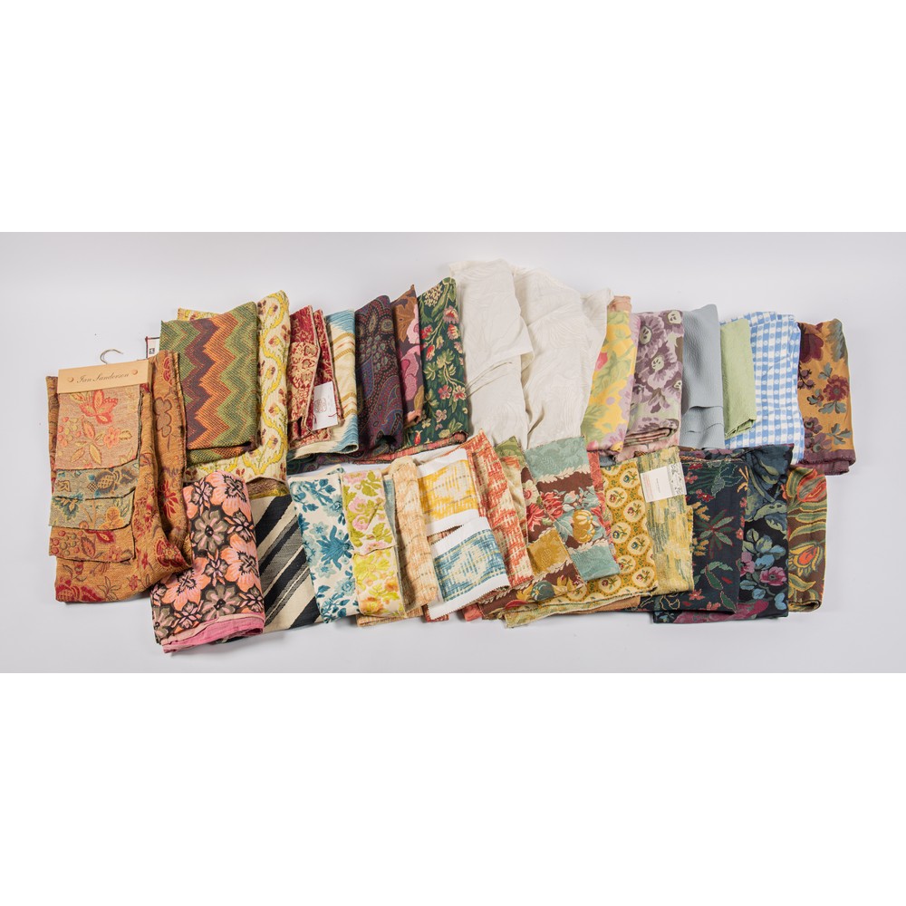 3 tirelle Braquenie, 2 tirelle Jab, 4 tirelle Colony, Prelle, Edmond Petit, P.C. Paris, Sanderson, 6 tirelle Manuel Canovas, H.L. Paris, Designers Guild, 2 scampoli vari, 2 tende in tessuto bianco, 2 sottotende in tessuto bianco, copriletto Batik, Lorenzo Rubelli, grande taglio di tessuto.