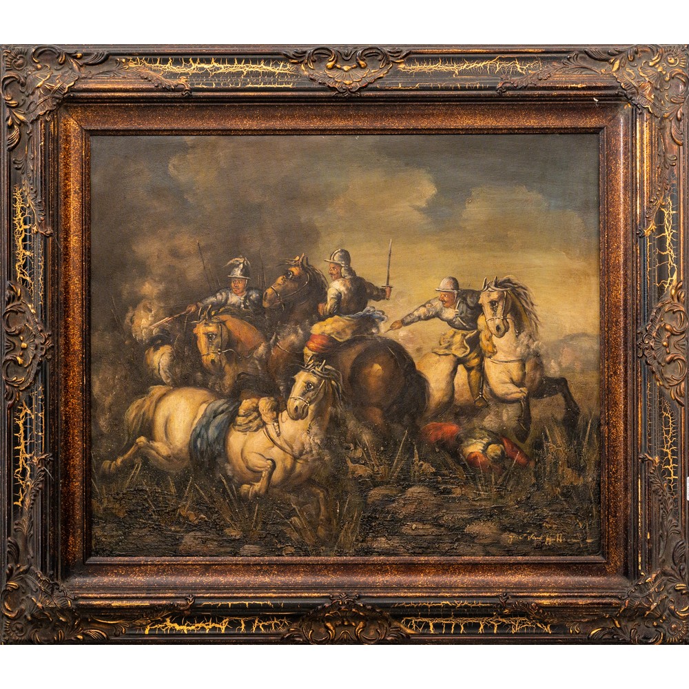 Lotto 239 | PITTORE DEL XX SECOLO, Battaglia, Olio su tela