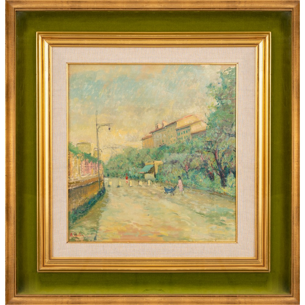 PITTORE DEL XX SECOLO Strada cittadina con personaggi Olio